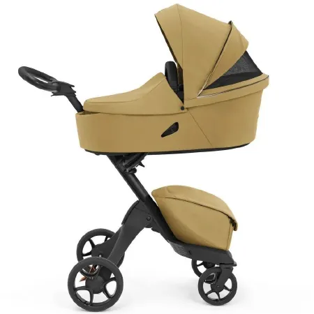 4. Stokke® Xplory X – беспрецедентная новинка, которая в отличие от Stokke® Xplory V6 имеет обновленный дизайн и функционал. Подставка для ножек регулируется по длине, обеспечивая комфорт на прогулке растущему малышу. Как уже отмечалось выше, у новинки модернизированная багажная корзина и обновленные, супер модные расцветки. Новая модель имеет максимально скругленную, более элегантную конструкцию, премиальная, «дышащая» обивка с водоотталкивающей пропиткой выполнена из ткани BIONIC FINISH® ECO, а все конструктивные элементы коляски закрыты тканью.