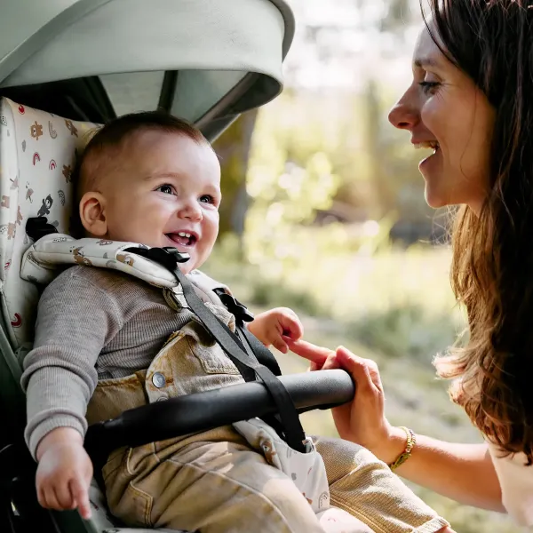 Система ремней безопасности HappyBelt® с пятью точками крепления гарантирует безопасность, а магнитная застежка и бесступенчатая регулировка делают процесс пристегивания простым и удобным.