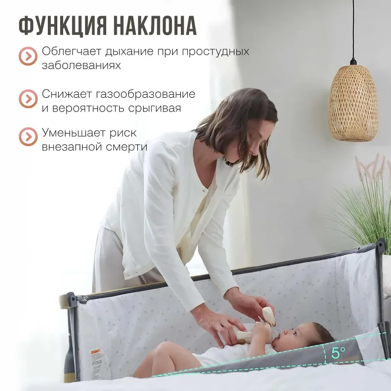 Стоит также отметить возможность регулировки угла наклона ложа. Наклонное положение (положение «антирефлюкс») снизит вероятность срыгивания и газообразования.