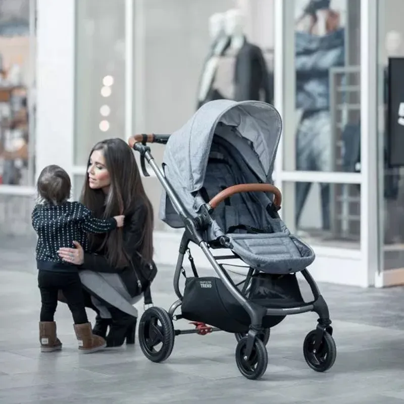Коляски серии Trend имеют обивку Tailormade – модный, стильный и практичный материал под «джинсу», - и накладки из эко-кожи на ручке и защитном поручне. С такой коляской вы не останетесь без внимания окружающих.