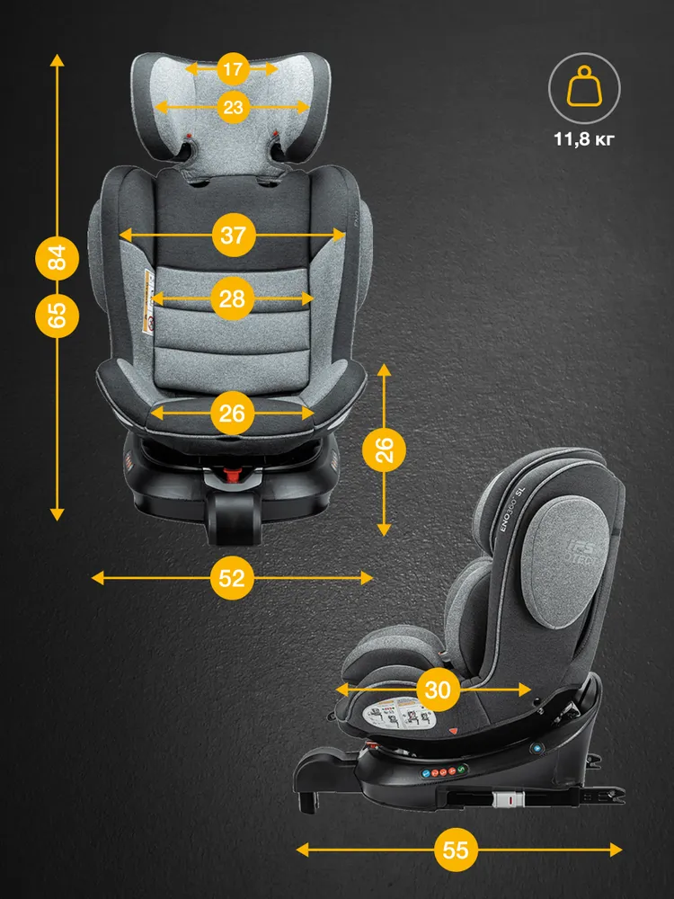 - универсальное автокресло, охватывающее все возрастные группы (с рождения до 12 лет; до 36 кг)