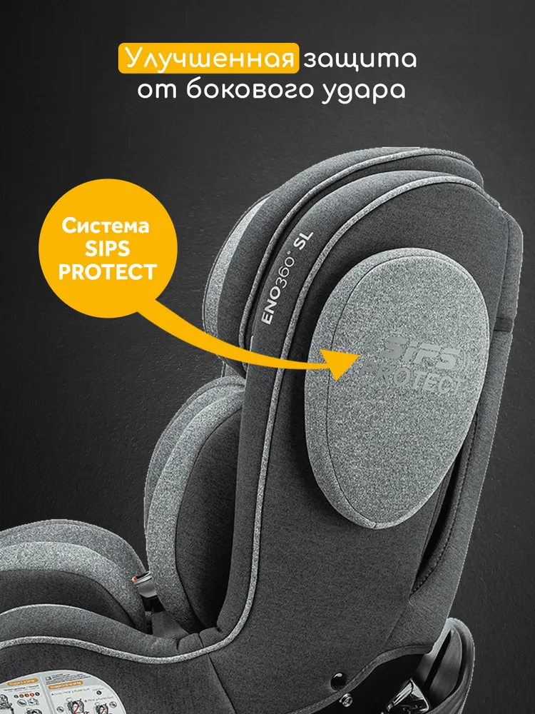 Модель оснащена современной защитой от бокового удара SIPS protect и дополнительным энергопоглощающим наполнителем в подголовнике. Мягкие ткани обшивки, гибкие настройки наклона для отдыха при любом направлении установки, а также большой диапазон регулировки подголовника по высоте, совместно с возможностью поворота, делают автокресло особенно комфортным для детей всех возрастов.