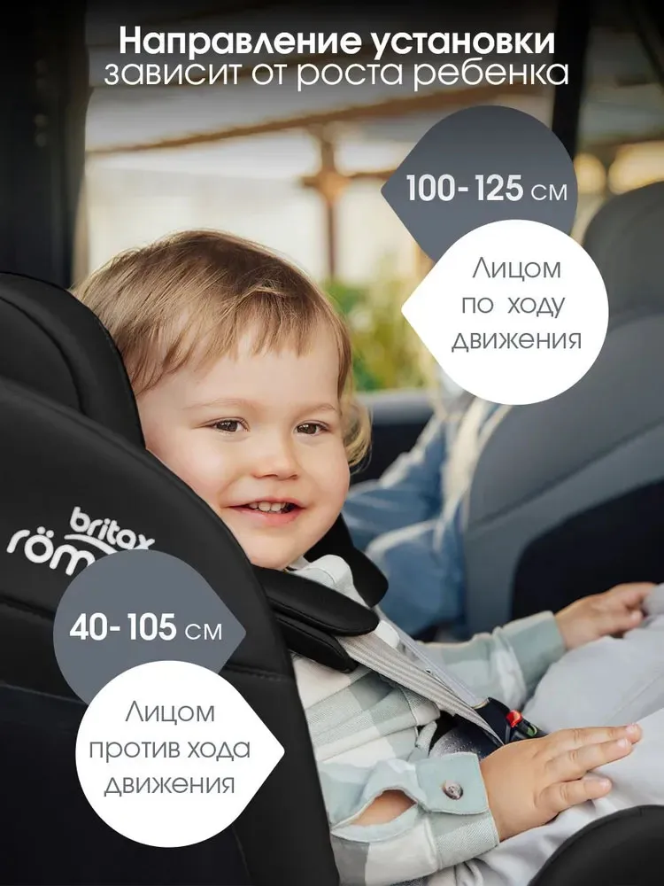 Автокресло SWIVEL позволяет вашему ребёнку дольше ездить лицом против хода движения (до 105 см) – в соответствии с рекомендациями экспертов. Лобовые столкновения относятся к самым распространенным видам аварий, поэтому выберите наиболее безопасный способ для поездок. В автокресле, установленном против хода движения, энергия удара распределяется равномерно по голове, шее и верхней части тела и лучше защищает ребёнка от травм.