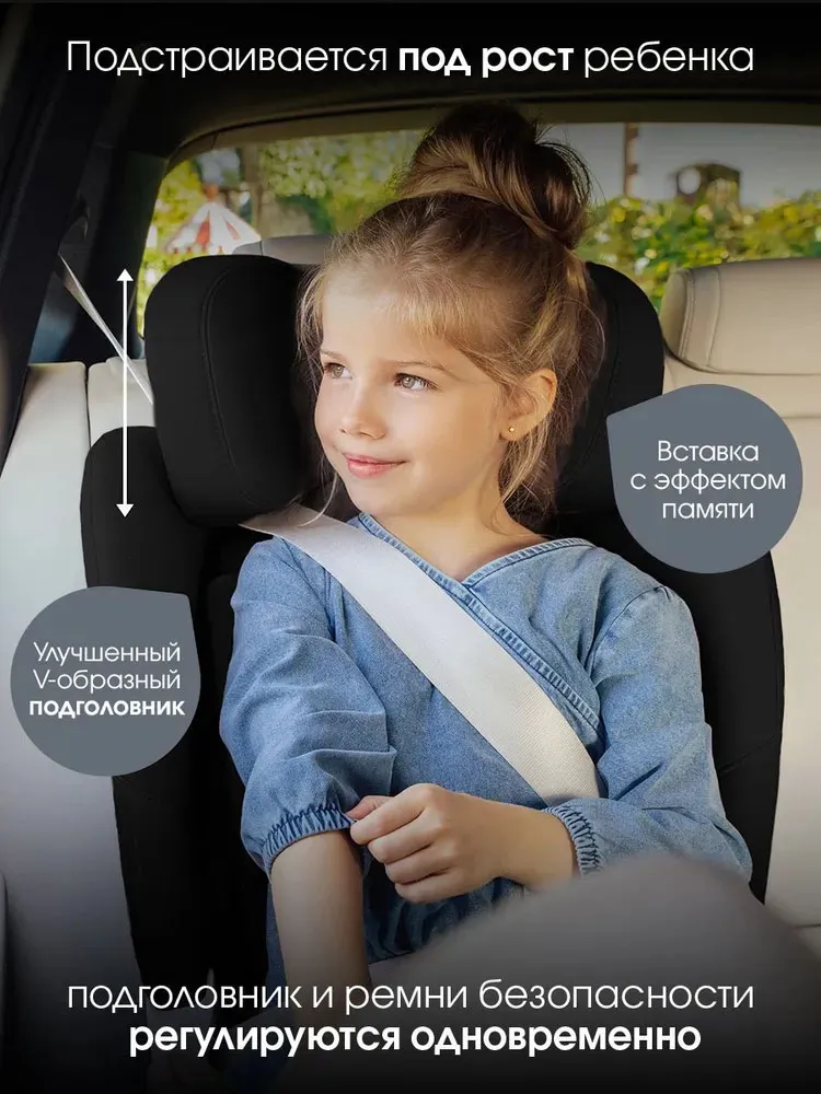 Корпус сиденья обеспечивает максимальную защиту от головы до бедер. Направляющие ремня безопасности гарантируют правильное положение штатного ремня. Мягкий подголовник обеспечивает безопасность и комфорт для головы и шеи, так что вы можете быть уверены, что ваш малыш защищен в любой поездке.