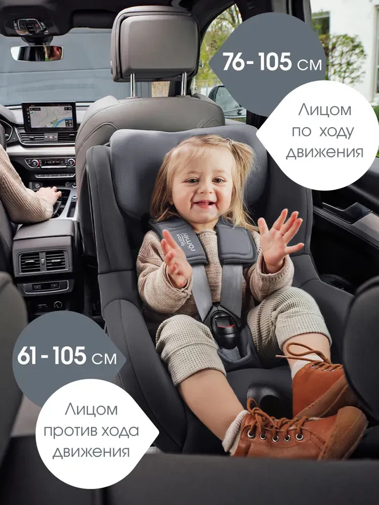 Оптимальная защита при боковом столкновении: V-образный подголовник специально разработан для ограничения движений головы ребёнка, чтобы защитить его шею практически в любой серьёзной ситуации. При этом по мере роста у ребёнка будет оставаться достаточно места в автокресле. Синхронная регулировка подголовника и ремней безопасности осуществляется легко и быстро, поэтому вашему ребёнку будет комфортно в любом возрасте.