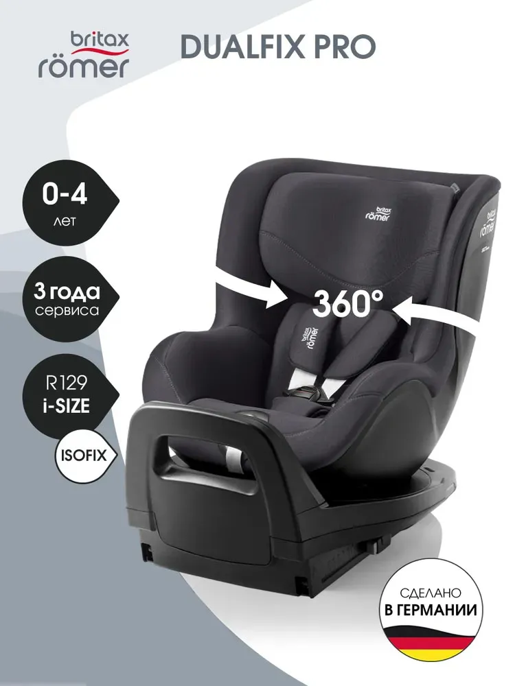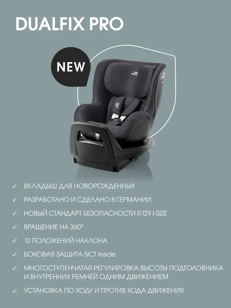 Автокресло DUALFIX PRO – это уверенность в том, что ваш ребёнок будет в безопасности во время любой поездки. Подходит для детей от рождения до 4-х лет (105 см), может устанавливаться как по ходу, так и против хода движения. А благодаря вращению чаши на 360 ° вам будет легко выполнить посадку и высадку вашего малыша – даже на самой тесной парковке.