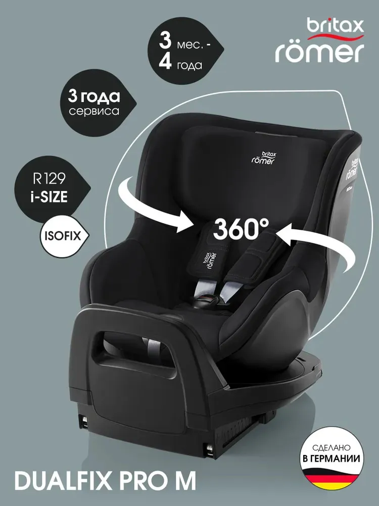 Автокресло DUALFIX PRO M– это уверенность в том, что ваш ребёнок будет в безопасности во время любой поездки. Подходит для детей от 3 месяцев до 4-х лет (105 см), может устанавливаться как по ходу, так и против хода движения. А благодаря вращению чаши на 360 ° вам будет легко выполнить посадку и высадку вашего малыша – даже на самой тесной парковке.