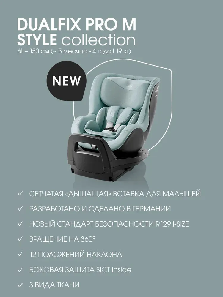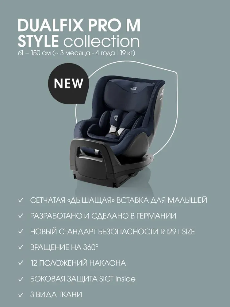Автокресло DUALFIX PRO M– это уверенность в том, что ваш ребёнок будет в безопасности во время любой поездки. Подходит для детей от 3 месяцев до 4-х лет (105 см), может устанавливаться как по ходу, так и против хода движения. А благодаря вращению чаши на 360 ° вам будет легко выполнить посадку и высадку вашего малыша – даже на самой тесной парковке.