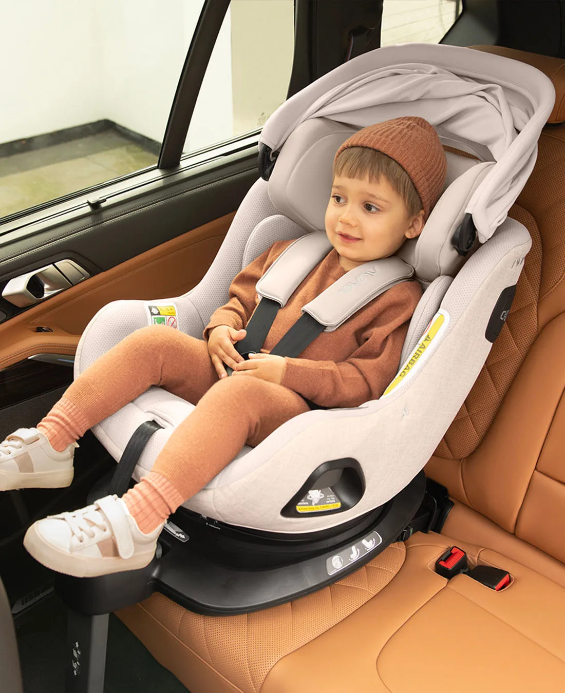 Поворотное автокресло-трансформер с опцией вращения на 360°, инновационной системой блокировки положения (лицом по ходу или против движения), сертификат i-Size (R129 от рождения до 19 кг / 105 см).