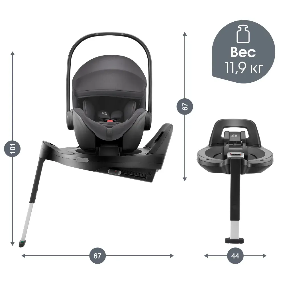 - Устанавливается штатным ремнем или на поворотную базу Britax Roemer с креплениями ISOFIX