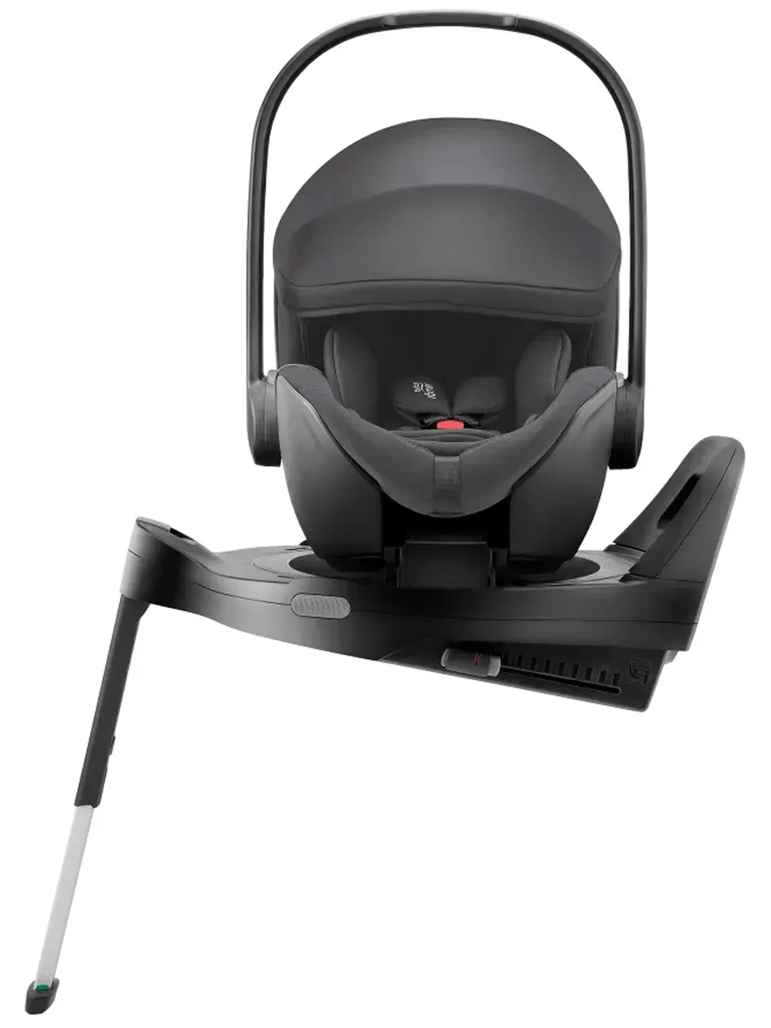 Устанавливается штатным ремнем или на поворотную базу Britax Roemer, а также совместима с большинством прогулочных колясок.