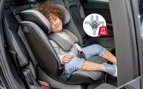 Ребенок ростом до 102 см и весом не более 21 кг фиксируется в автокресле внутренними пятиточечными ремнями с мягкими неопреновыми накладками, а кресло удерживается в автомобиле с помощью креплений ISOFIX и якорного ремня (Top Tether) . В диапазоне роста от 100 до 150 см внутренние ремни прячутся в специальные ниши внутри корпуса, а ребенок вместе с креслом фиксируется штатными ремнями безопасности автомобиля.