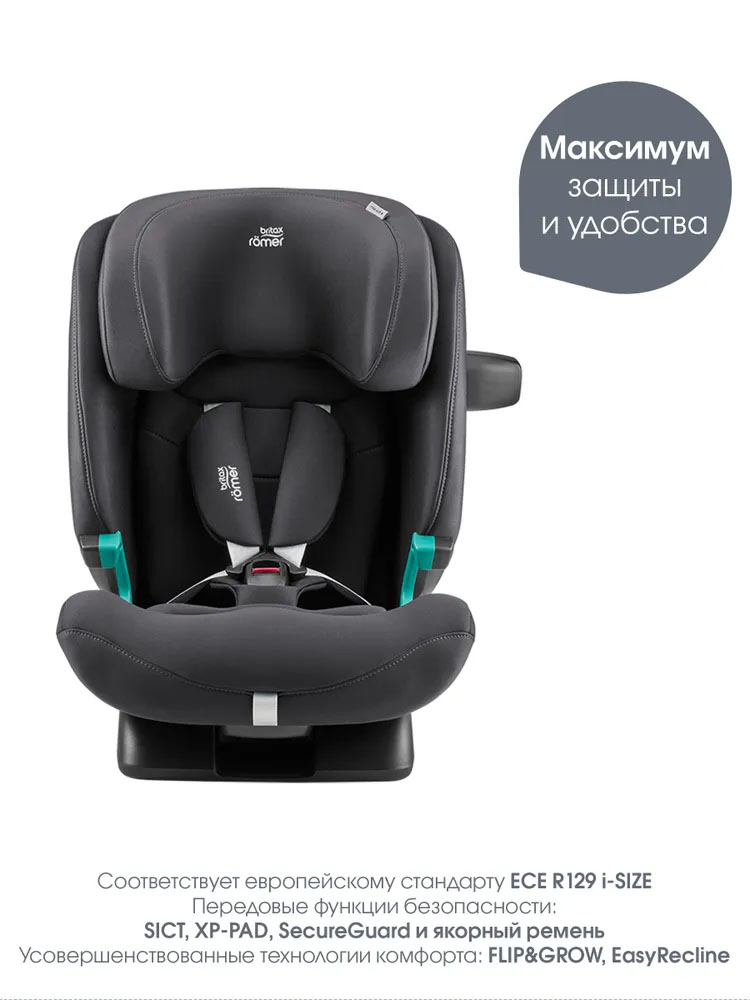Advansafix Pro станет верным другом и для вашего малыша – всегда рядом, когда ему это нужно. Автокресло Advansafix Pro растет вместе с вашим малышом (с 15 месяцев и до 12 лет). Одобрено в соответствии с новейшими стандартами безопасности i-Size (R129), оно обеспечивает максимальную защиту ребенка в любой поездке. Благодаря функции FLIP&GROW, по мере роста ребенка вы можете перейти от использования встроенного 5-точечного ремня безопасности к использованию 3-точечного ремня безопасности автомобиля. А поскольку нет необходимости снимать какие-либо детали автокресла, перевод кресла из одной группы в другую будет очень прост и удобен. Оснащено передовыми функциями безопасности: SICT, XP-PAD и SecureGuard.