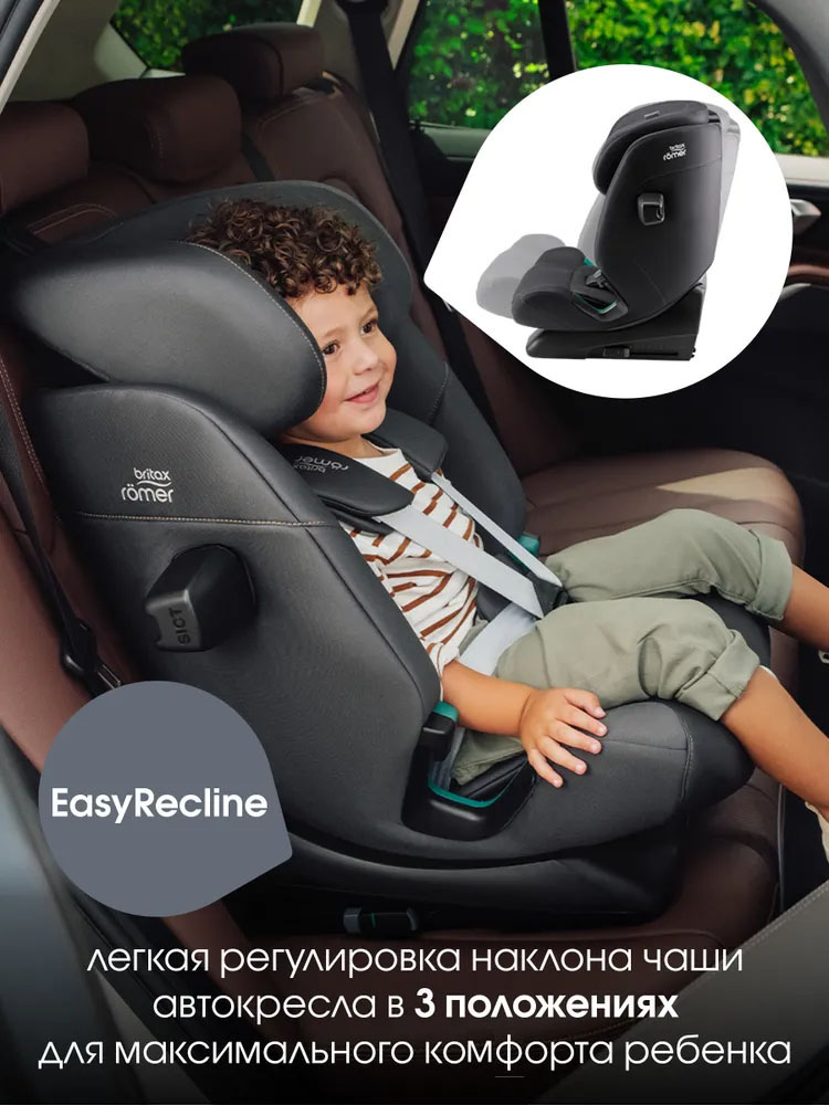 Минимизирует вращение автокресла, что снижает риск получения травм головы и шеи при столкновении. С помощью функции EasyRecline вы можете регулировать наклон сиденья для максимального комфорта вашего ребенка, даже во время движения.