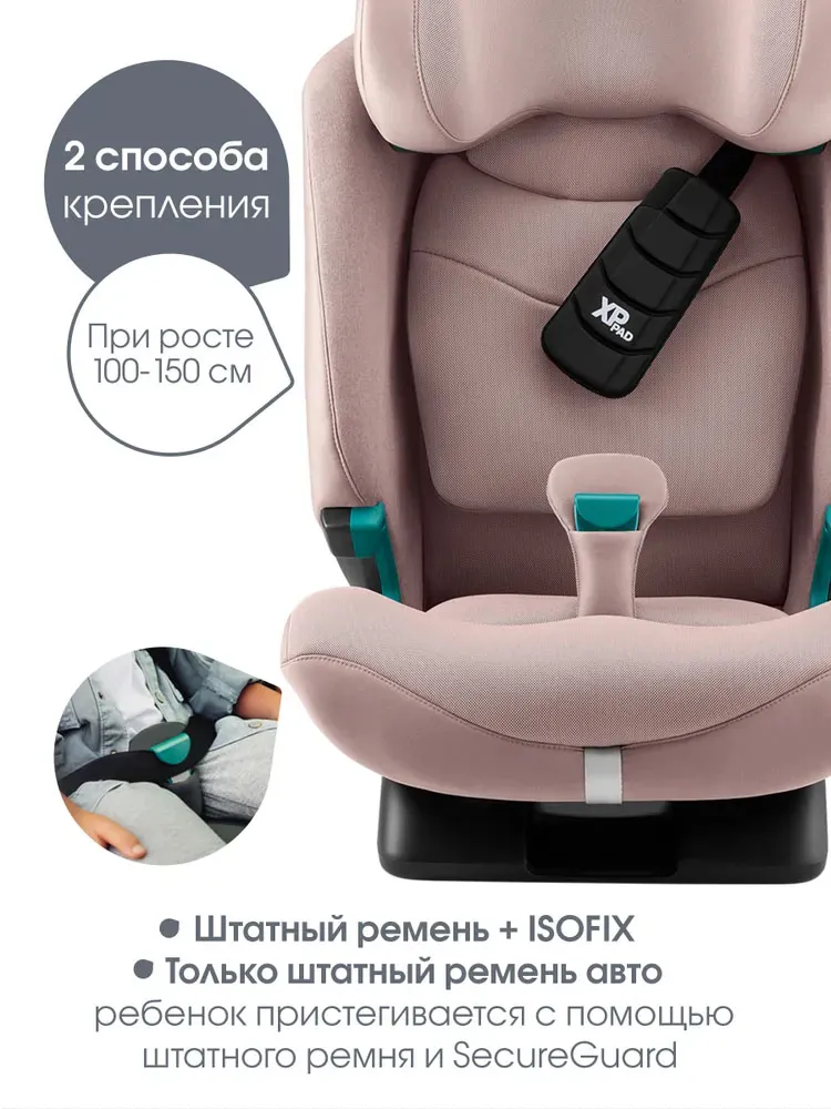 Амортизирующая подушка XP-Pad защитит малыша при лобовом ударе. В случае аварии она уменьшает движение головы вперед на 30%*, предотвращая удар головы ребенка о грудную клетку. XP-Pad делает каждую поездку более комфортной, смягчая давление ремня безопасности на нежную кожу ребенка.