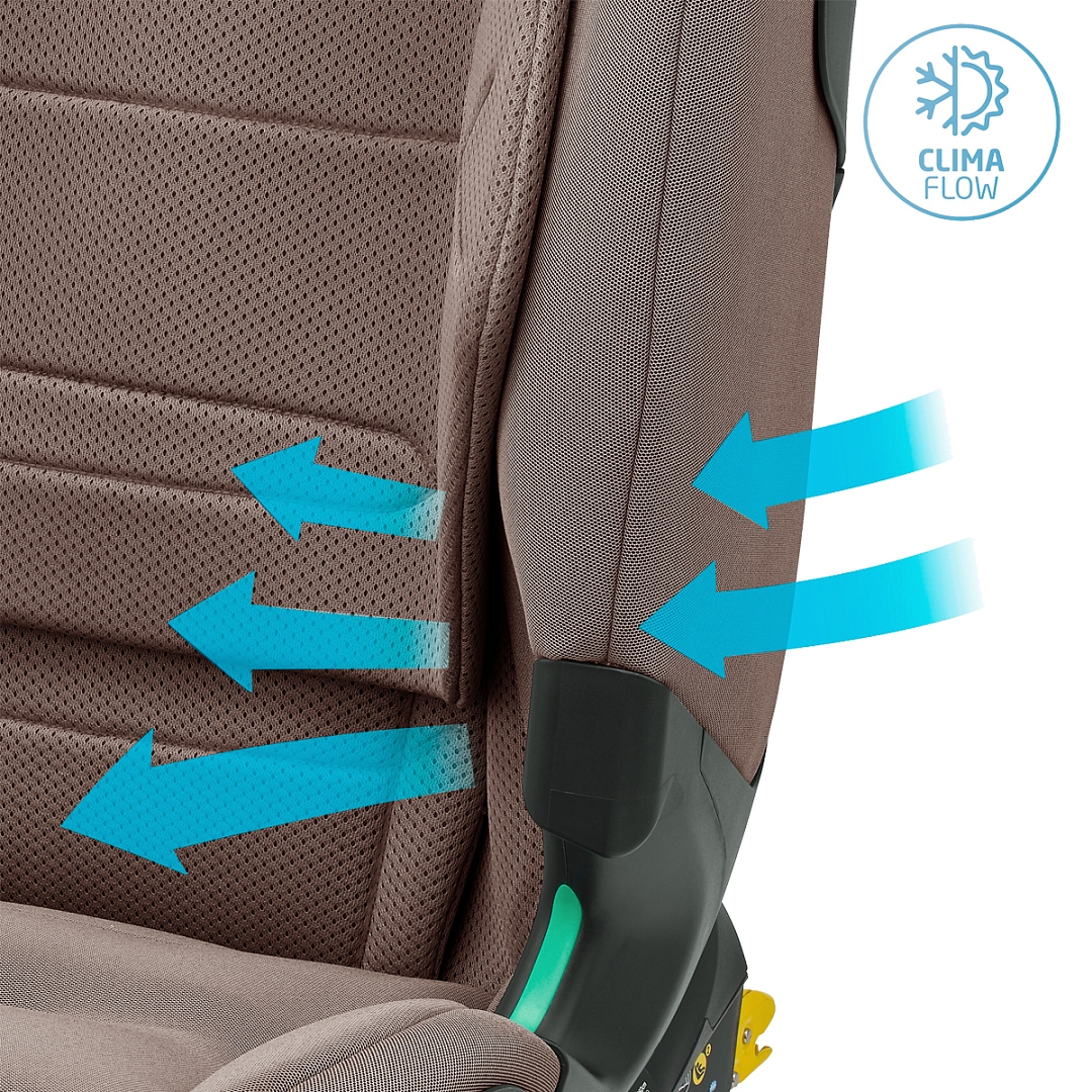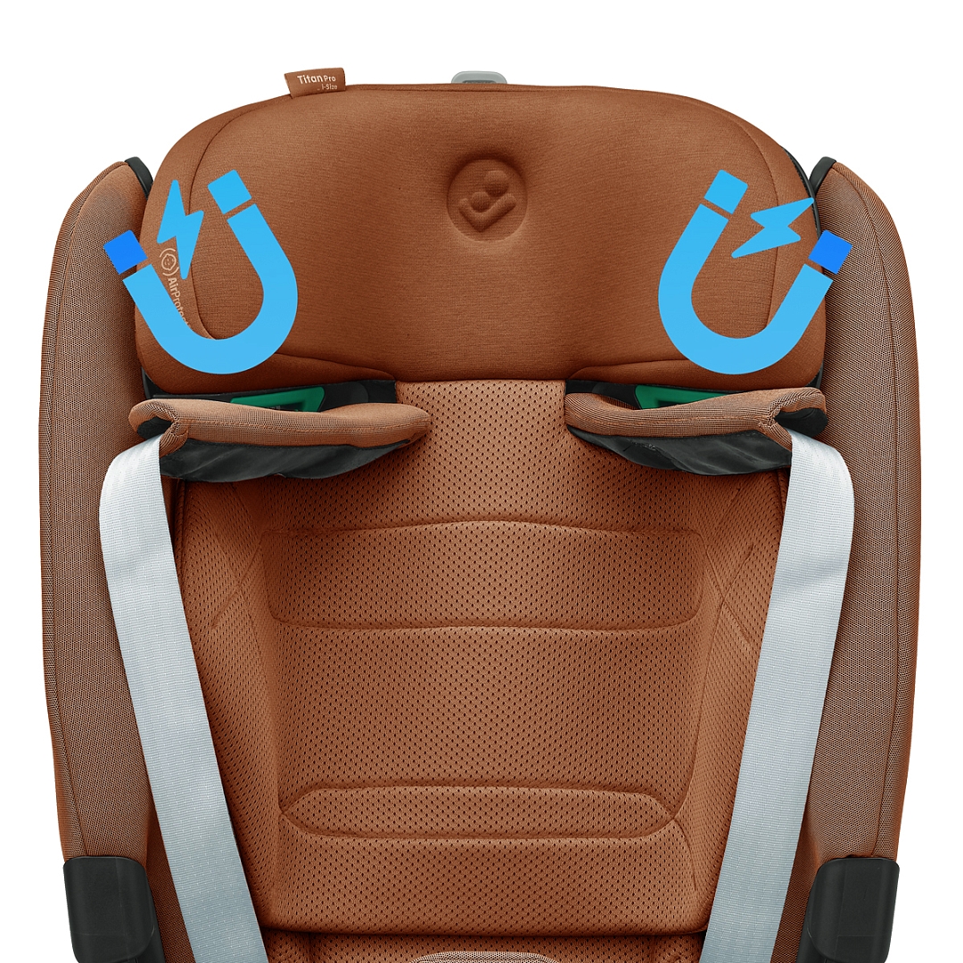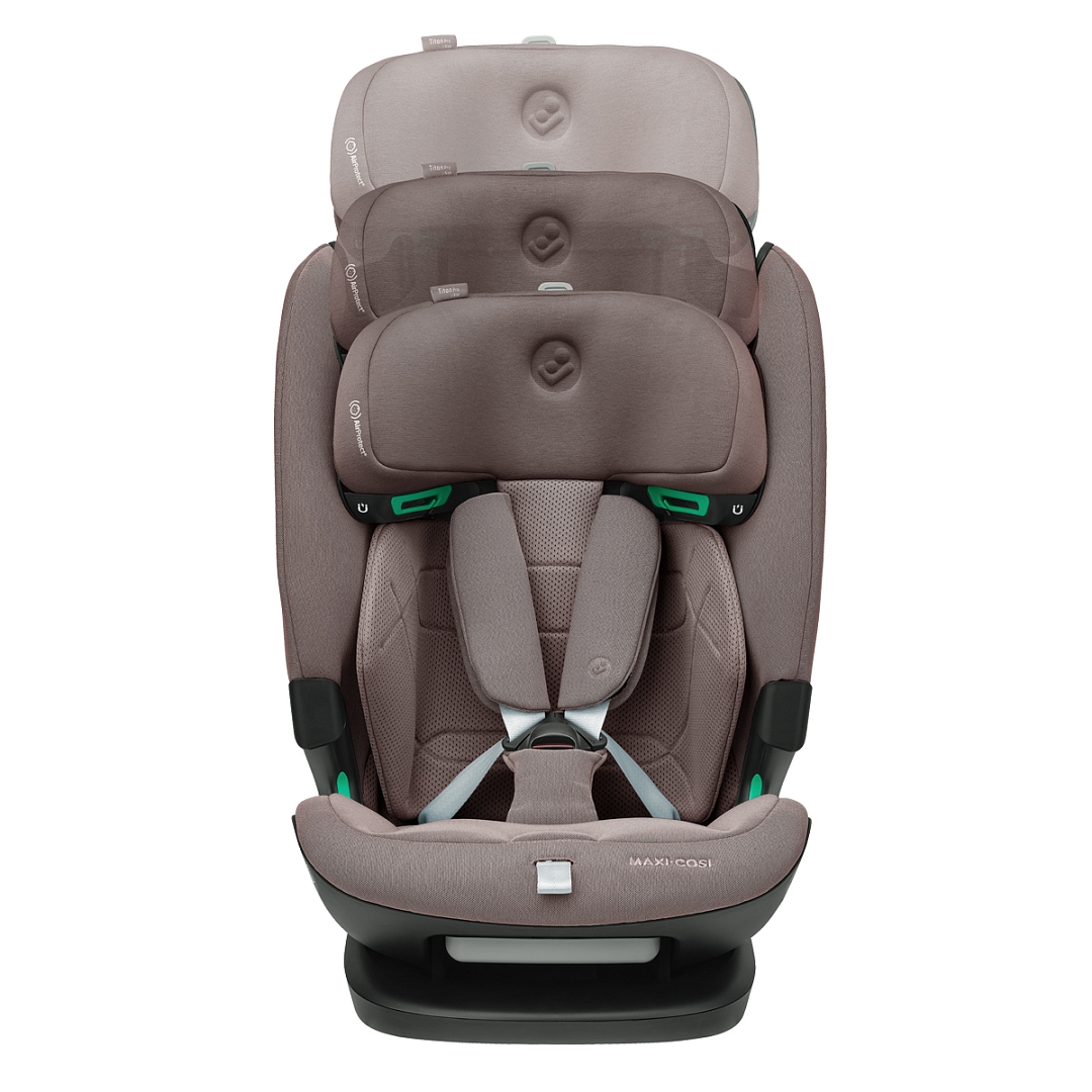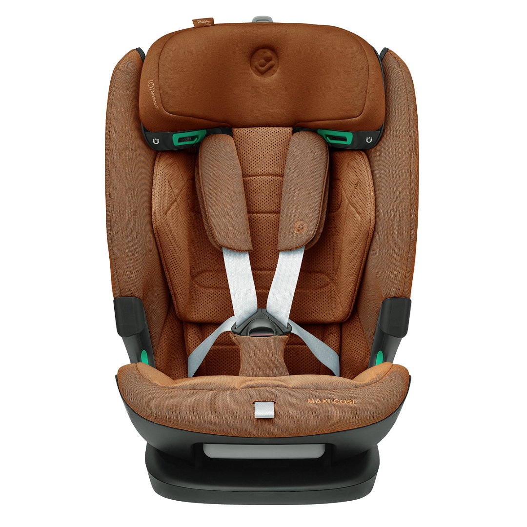 Maxi-Cosi Titan Pro i-Size оборудовано запатентованной системой боковой защиты головы AirProtect и туловища G-Cell, крепится коннекторами ISOFIX с якорным ремнем (Top Tether) и штатными ремнями безопасности при весе ребенка от 18 кг. Чехлы из «дышащих тканей» и фирменные панели ClimaFlow гарантируют высокий уровень комфорта в любую погоду.