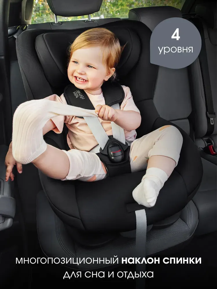 Наклонная чаша и система натяжения ремней безопасности обеспечивают простую, надежную и легкую установку. Больше не нужно бороться с запутанными ремнями: автокресло автоматически натягивает штатный ремень. Наслаждайтесь простотой, безопасностью и удобством.