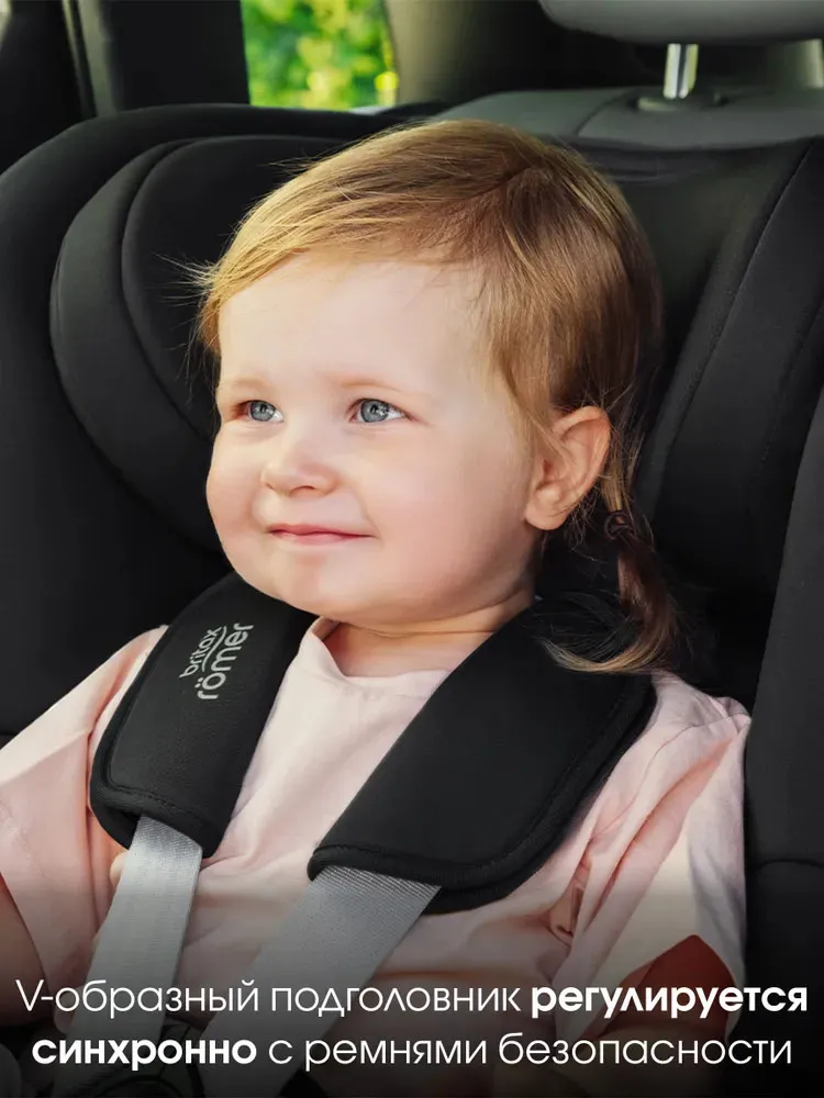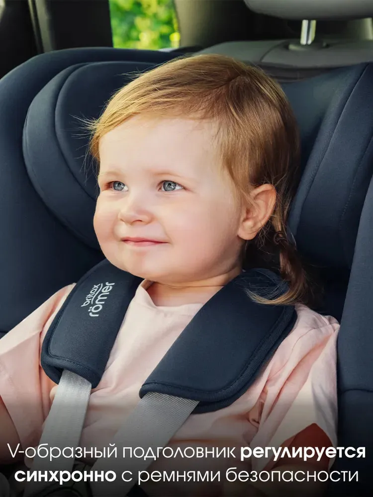 Оптимальная защита при боковом столкновении: V-образный подголовник специально разработан для того, чтобы ограничить движения головы вашего малыша. Регулировка подголовника осуществляется синхронно с ремнями безопасности, и по мере роста у ребёнка будет оставаться достаточно места в автокресле.