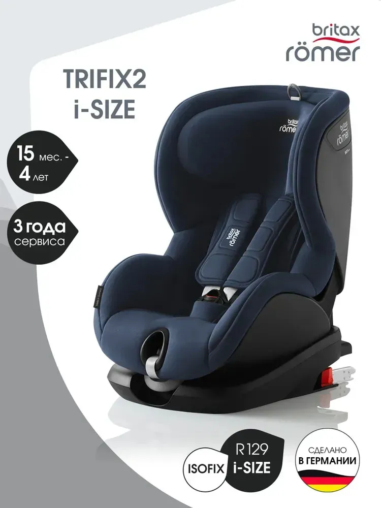 Britax Römer TRIFIX2 i-Size — обновлённая модель автокресла, разработанная в соответствии с требованиями нового стандарта ECE 129 i-Size. Предназначена для детей ростом от 76 до 105 см (примерно от 15 месяцев до 4 лет). Является идеальным выбором после завершения пользования автолюлькой.