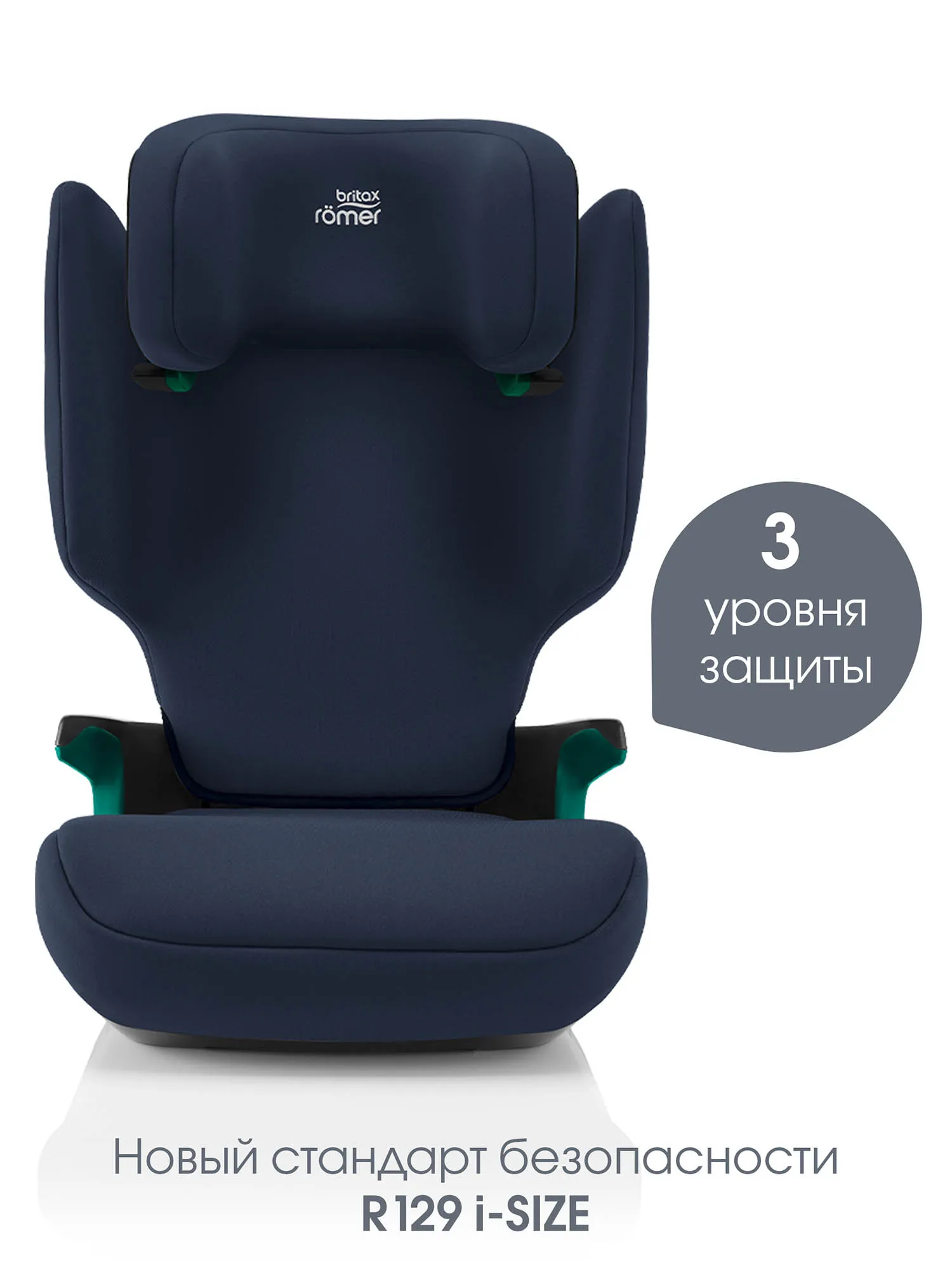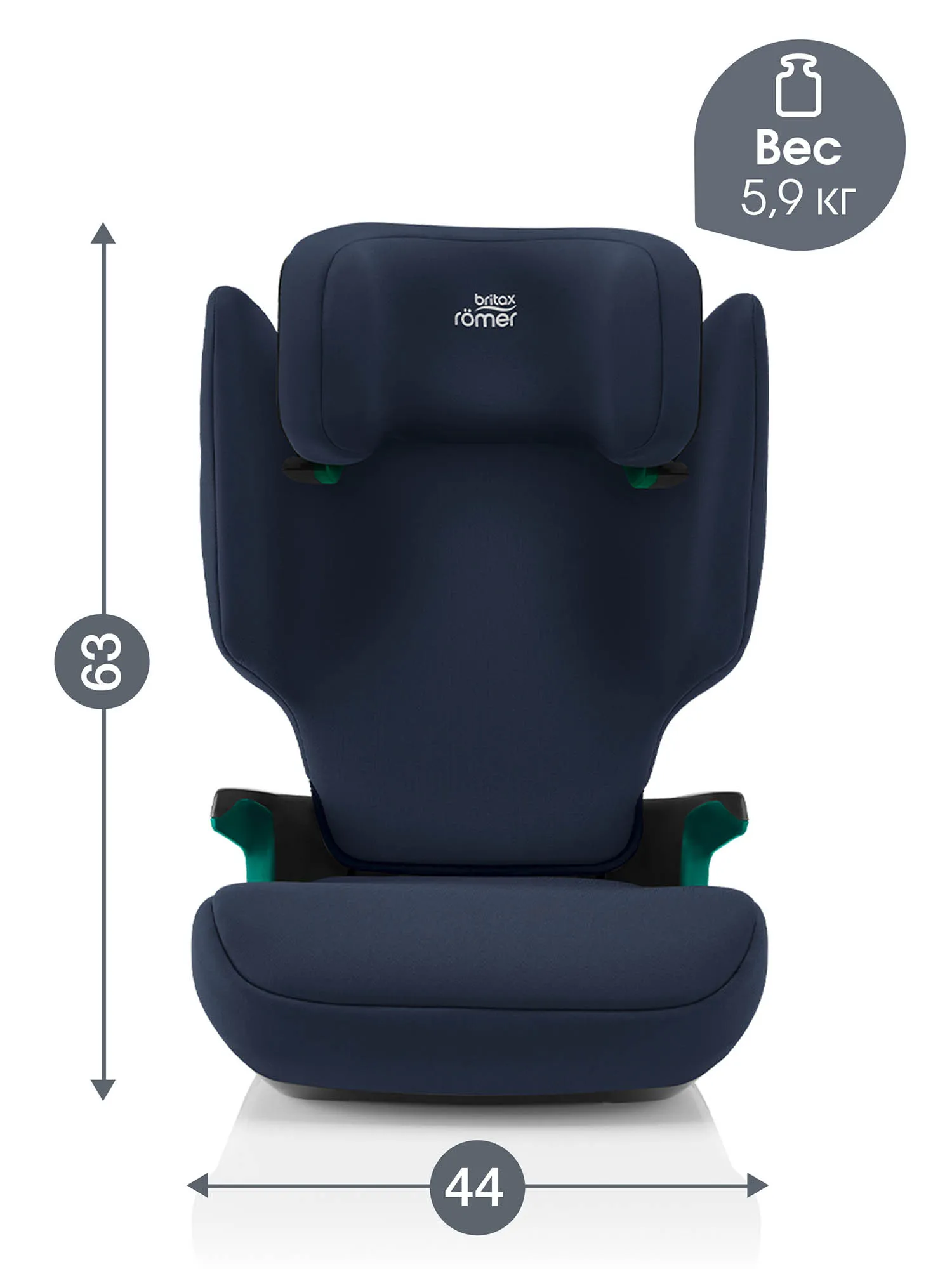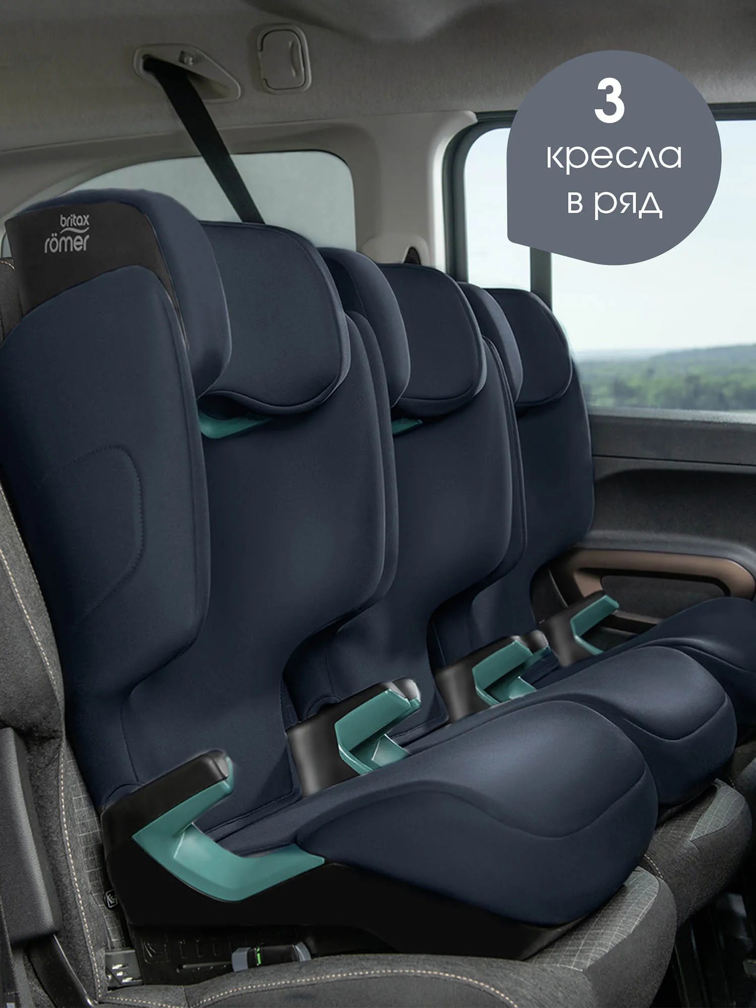 Ширина Britax Roemer Discovery Plus, не превышающая 44 см, позволяет разместить до 3 кресел в ряд на заднем сиденье крупного автомобиля, что очень удобно для семьи с 3 детьми.
