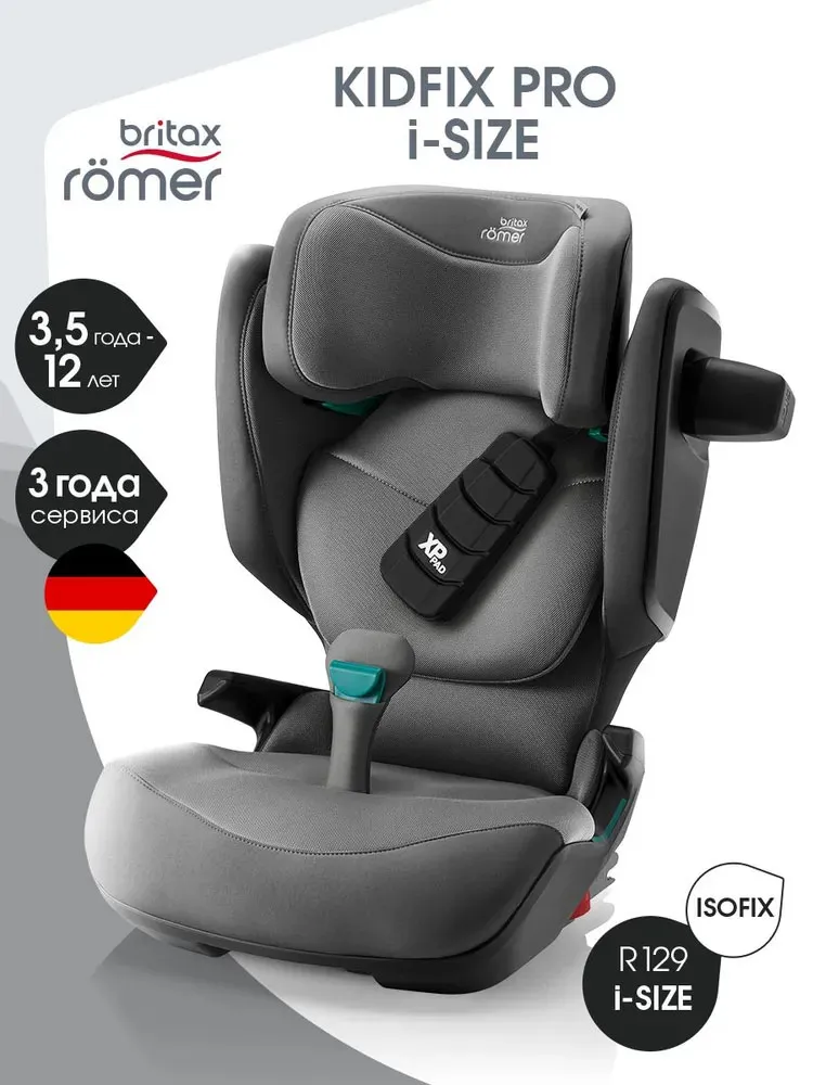 Автокресло KIDFIX PRO, сертифицированное по стандарту i-SIZE, отличается компактным корпусом шириной всего 44 см, что позволяет безопасно установить три таких кресла в ряд. Это особенно удобно для семей с несколькими детьми или для тех, кто часто перевозит в машине маленьких друзей своего ребенка.