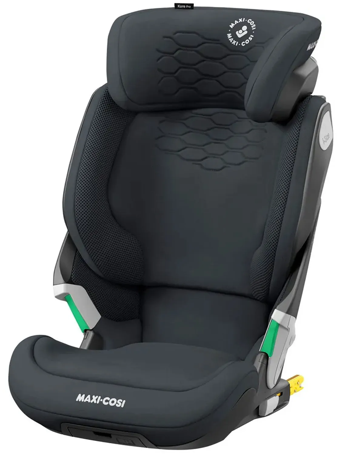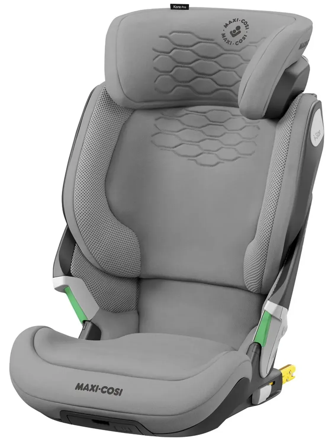 Maxi-Cosi Kore Pro i-Size — автокресло стандарта ECE 129 i-Size старшей возрастной группы 2-3. Кресло обеспечивает повышенный комфорт, благодаря регулировкам по высоте и ширине по мере роста ребёнка. Подголовник регулируется по высоте клавишами по бокам — достаточно нажать клавишу сбоку и потянуть подголовник вверх.
