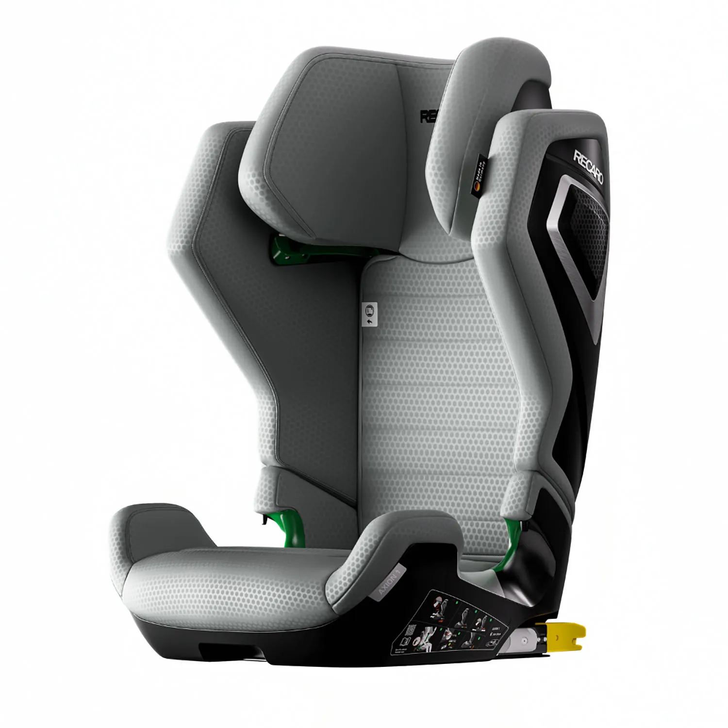 Подголовник изготовлен из вибропоглощающего материала и мягкой пены с эффектом памяти, что обеспечивает оптимальную поддержку и комфорт для шеи. Спинка кресла совместима с любым автомобильным сиденьем и поддерживает регулировку угла наклона для сохранения здорового позвоночника у детей. Подушка-вкладыш усиливает ощущение комфорта, особенно в области таза ребенка во время длительных поездок.