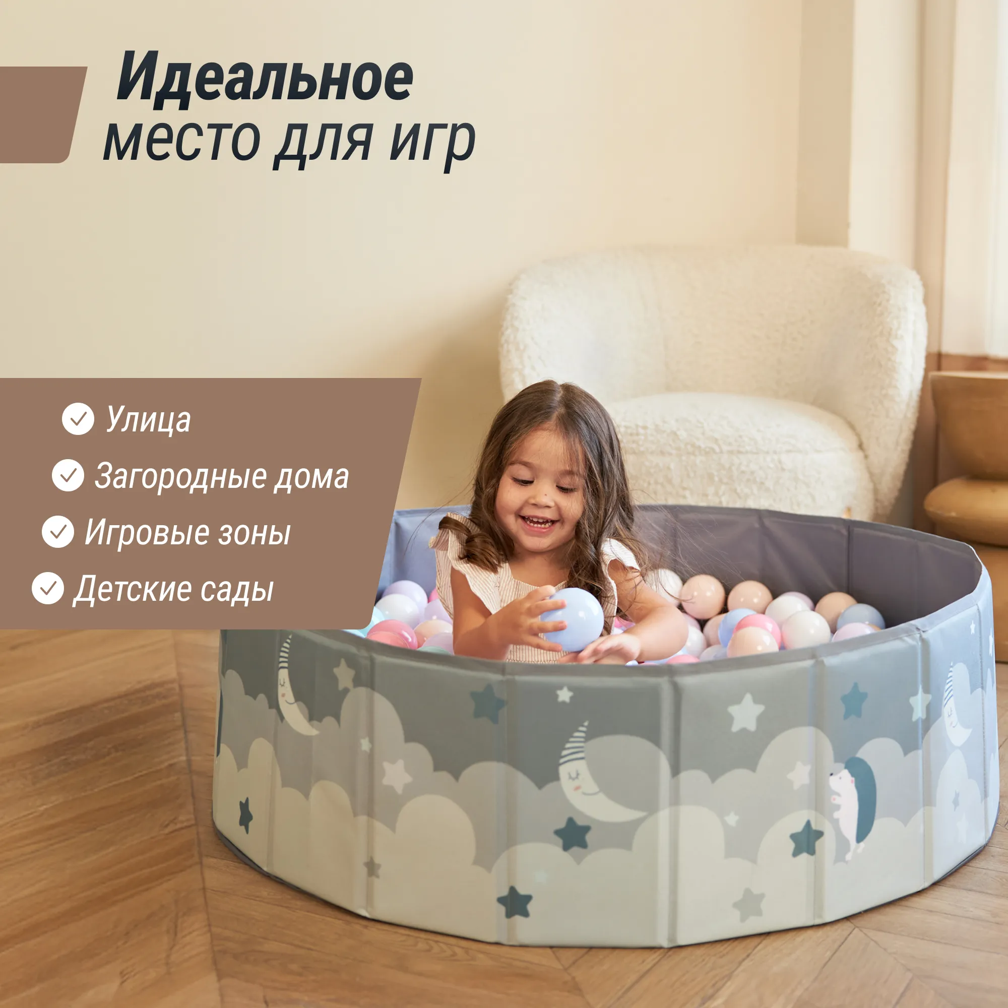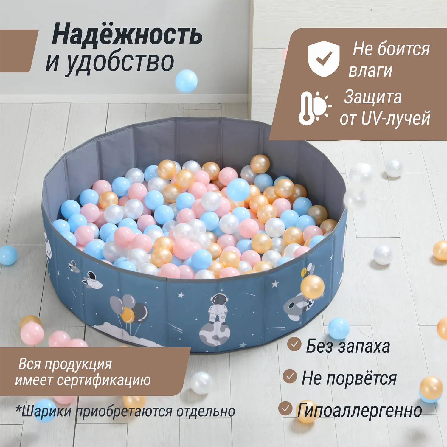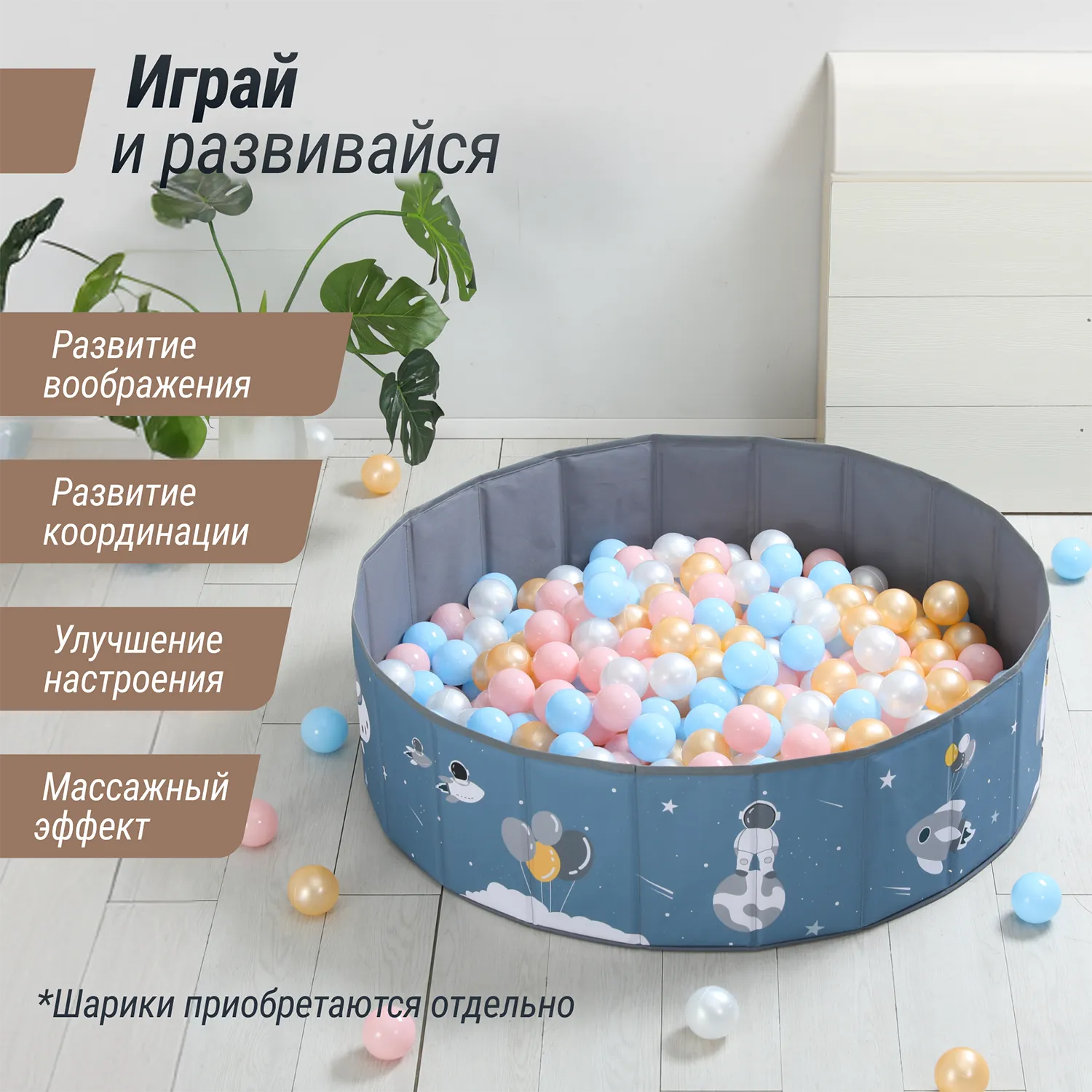 - Можно использовать совместно с горкой, с которой очень весело съезжать в шарики (горка и шарики приобретаются отдельно)