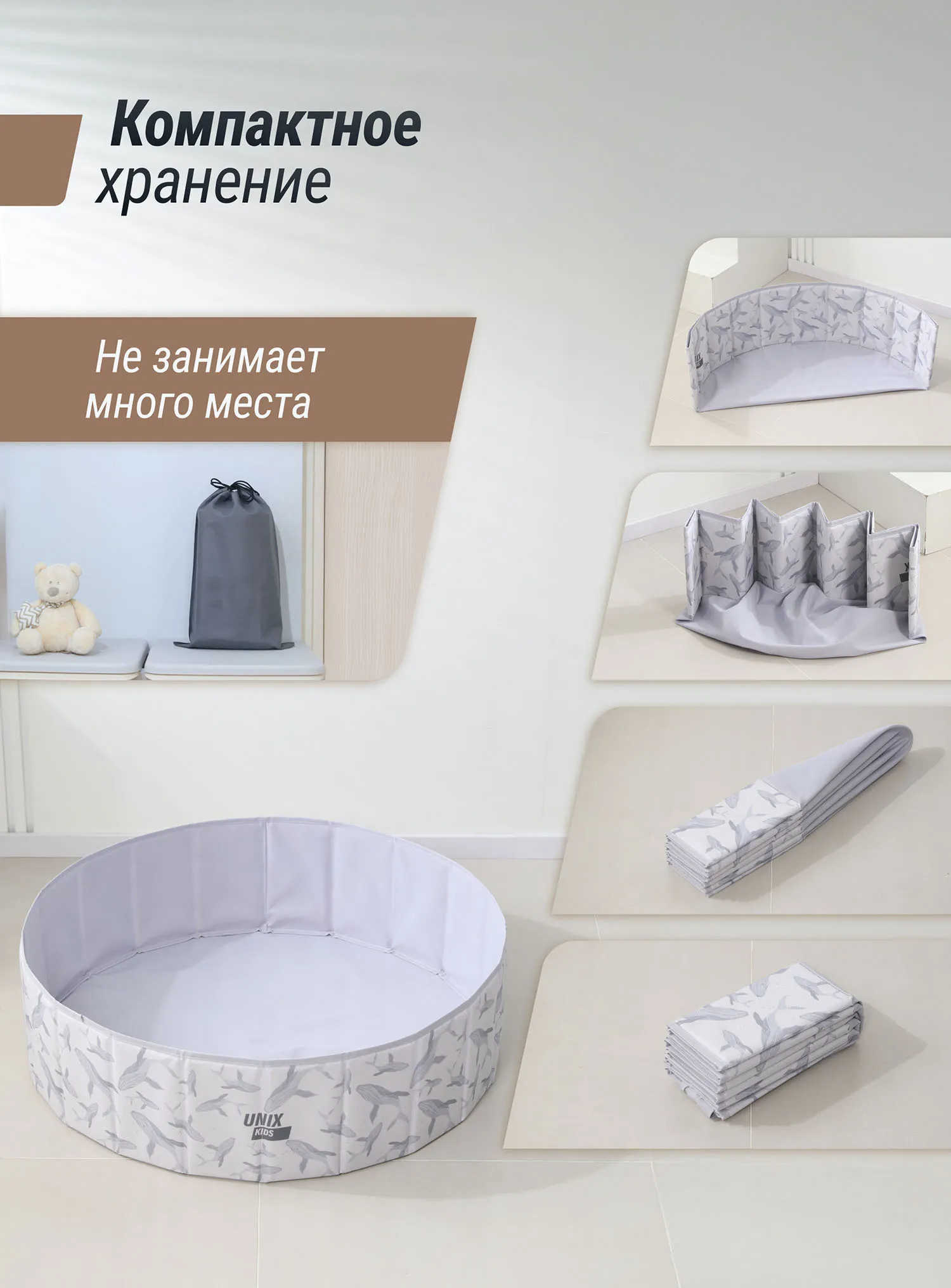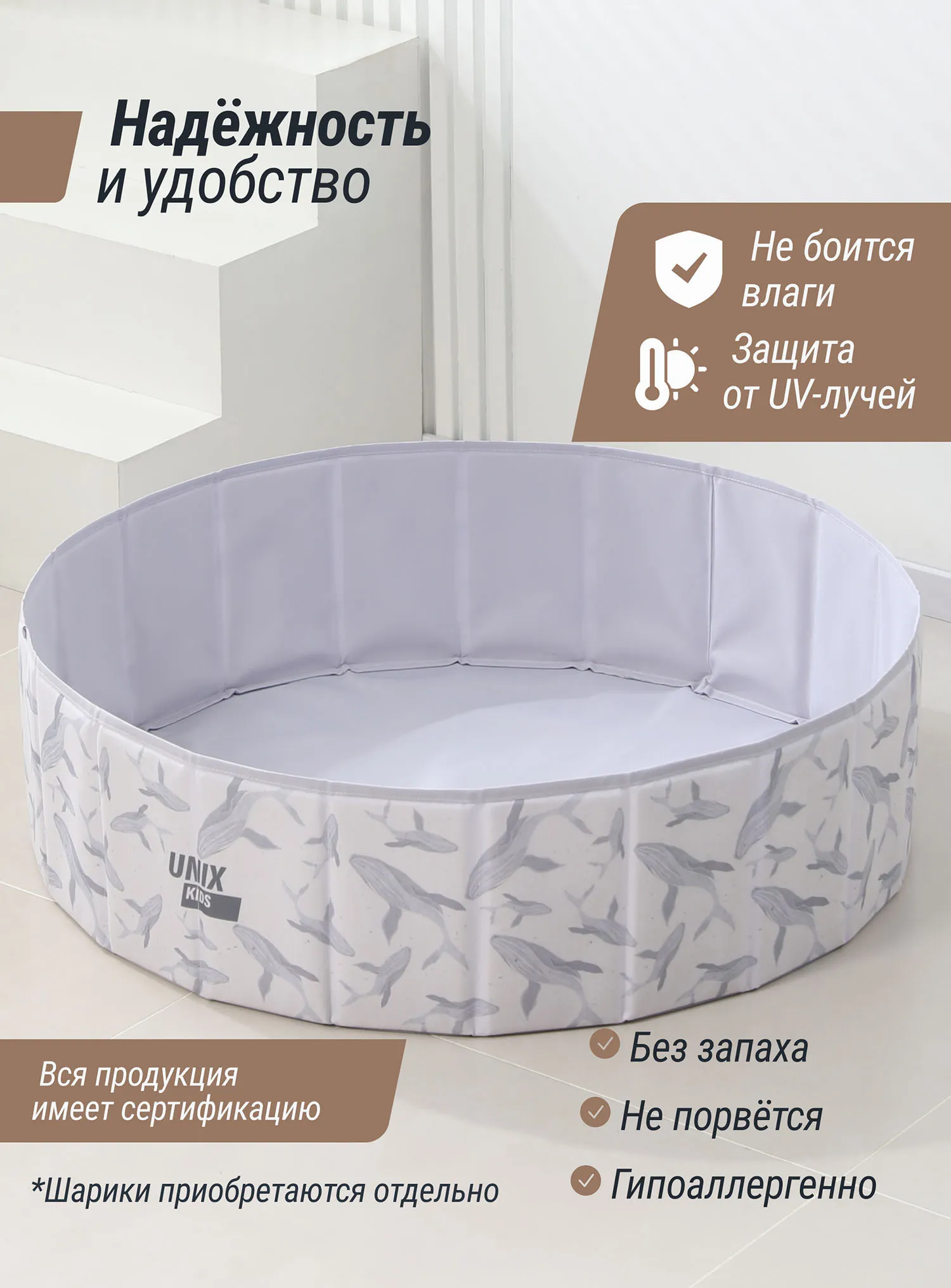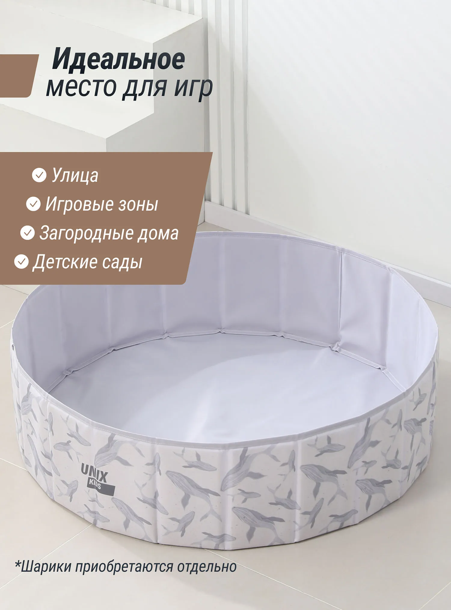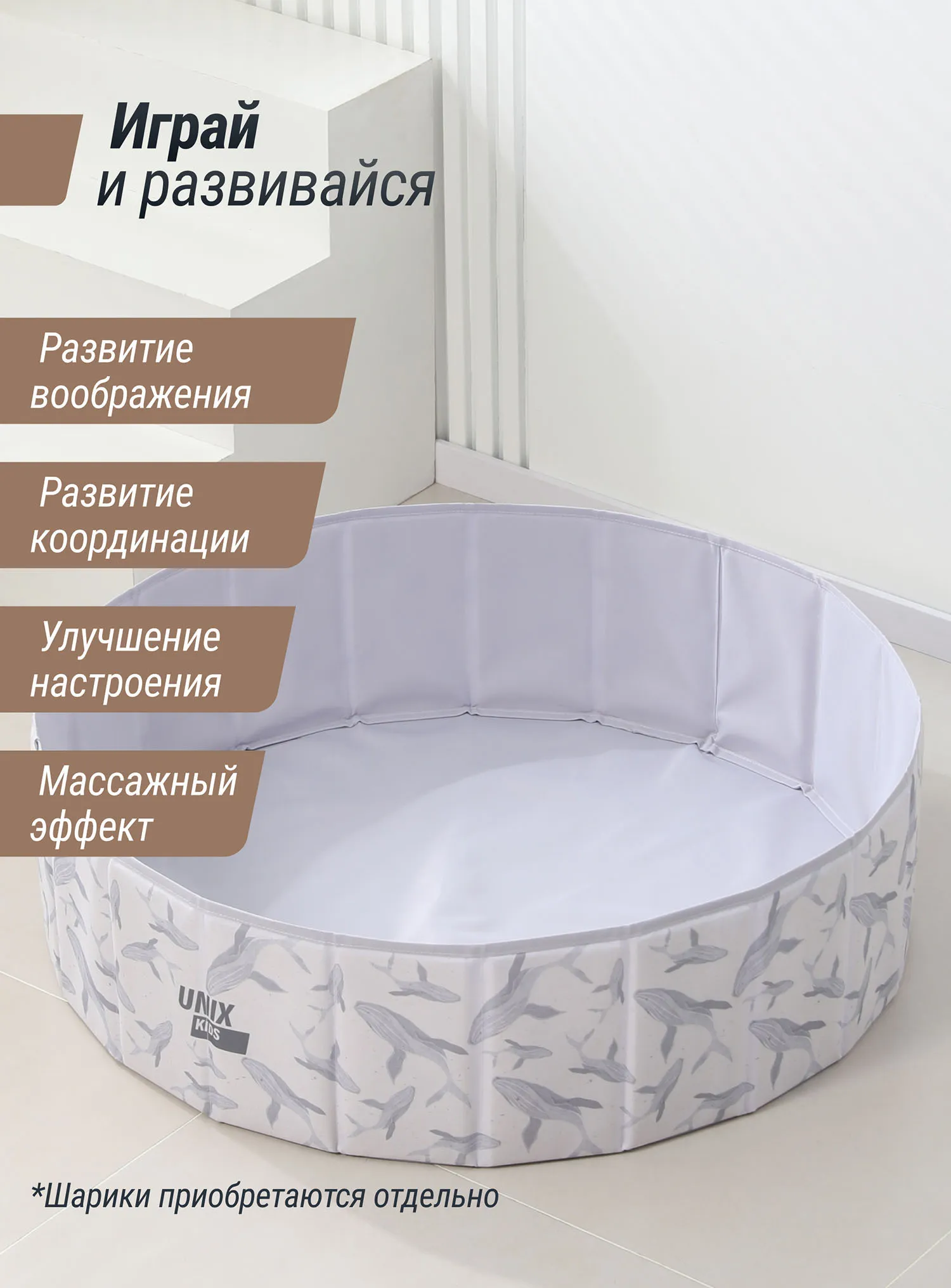 Детский сухой бассейн для шариков Unix Kids — это простая и веселая забава для малышей! Используйте его как отдельную игровую зону или для активных игр вместе с шариками.