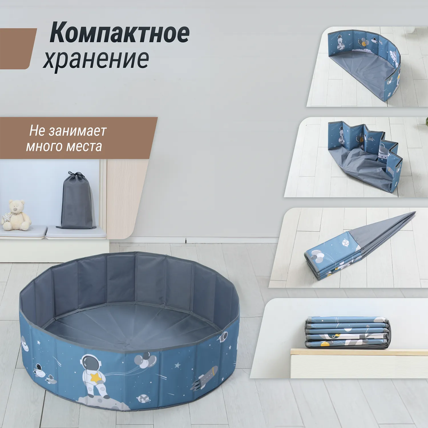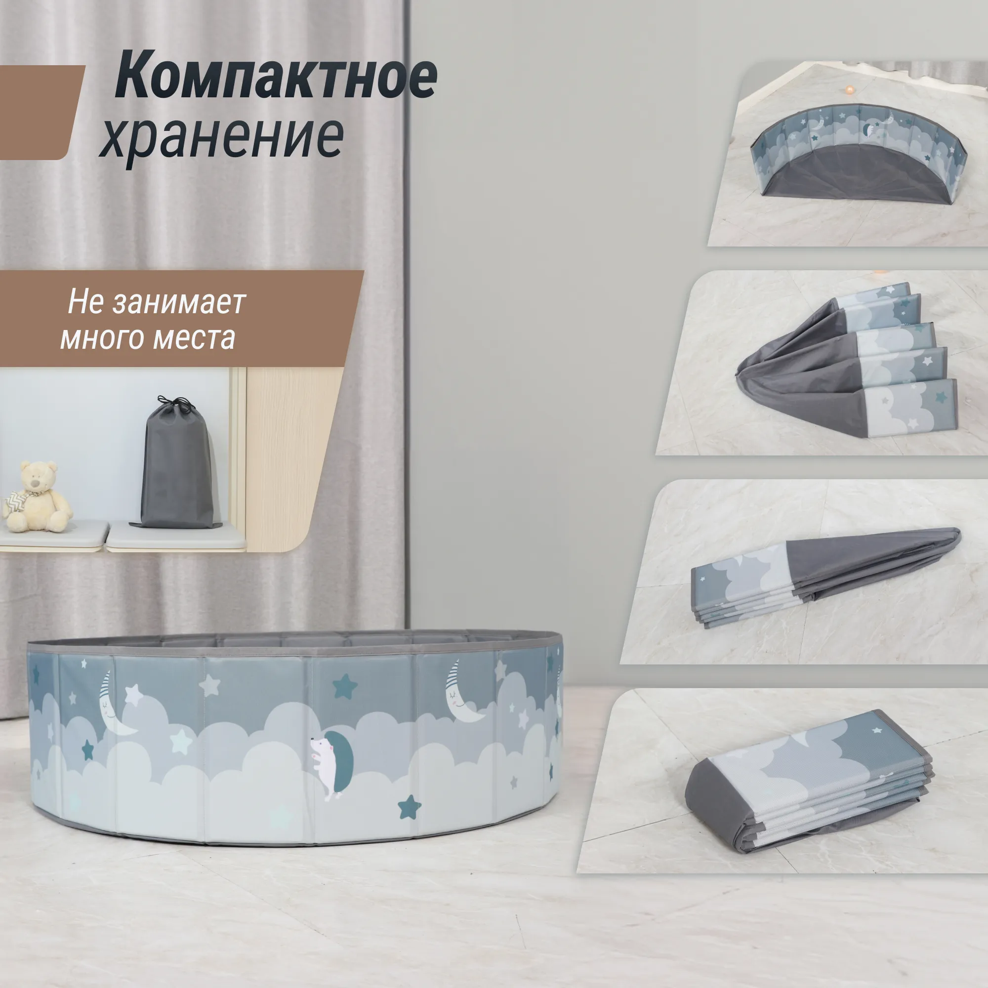 - Удобно складывается и убирается в мешочек, занимает мало места, легко брать с собой в дорогу, подойдет для игры на пляже или на даче
