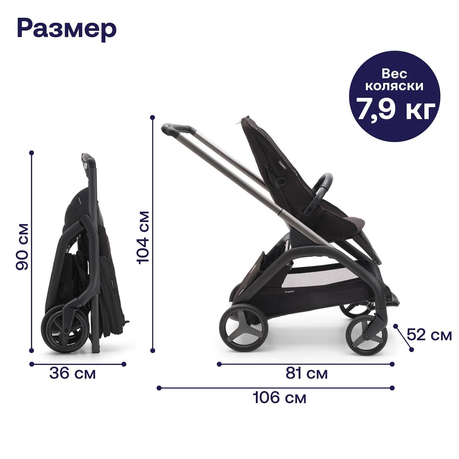 - Размеры в сложенном виде (дхшхв): 36х52x90 см
