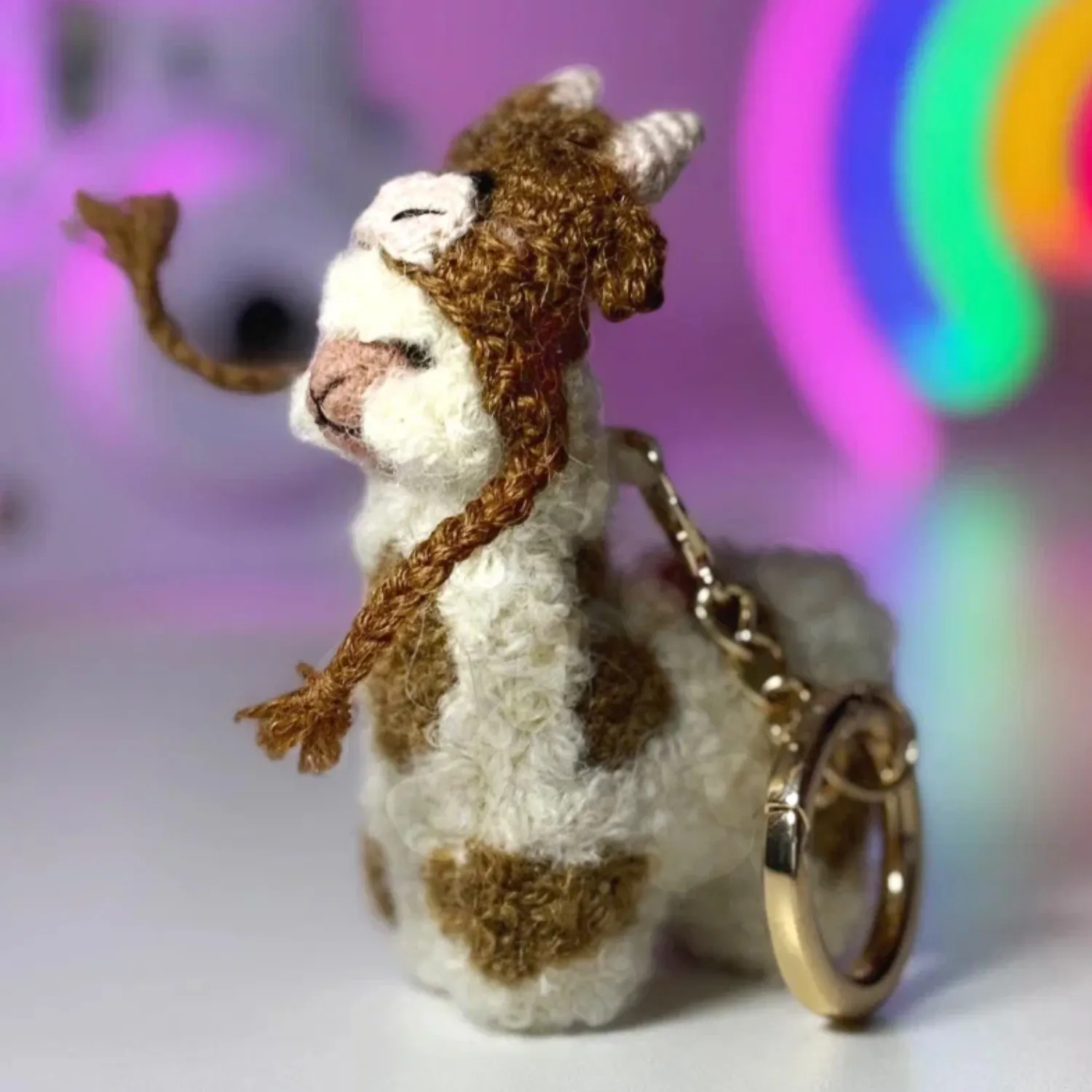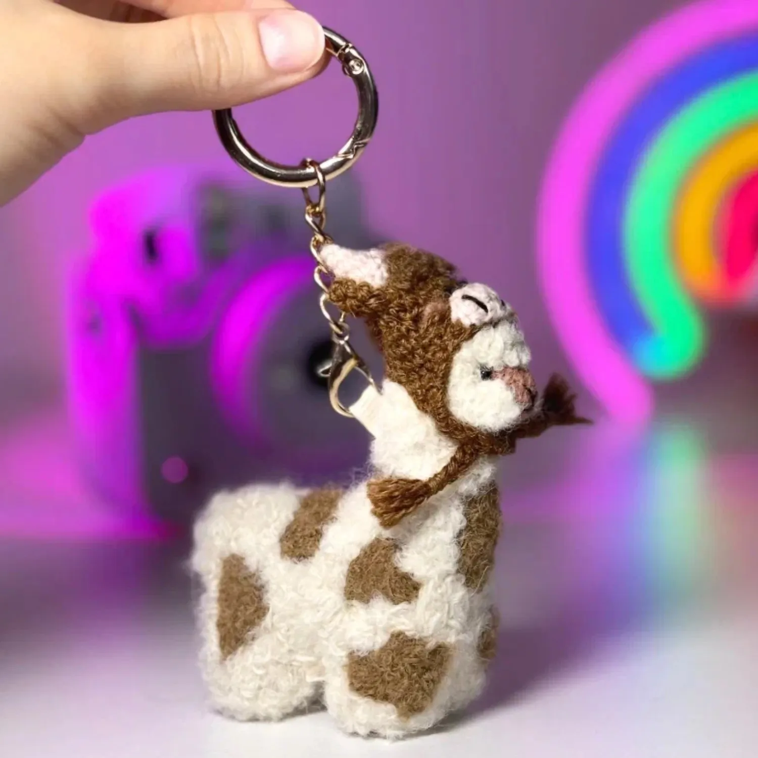 Брелок вязаный ЛеРаРу альпачонок Имми в шапочке коровка
