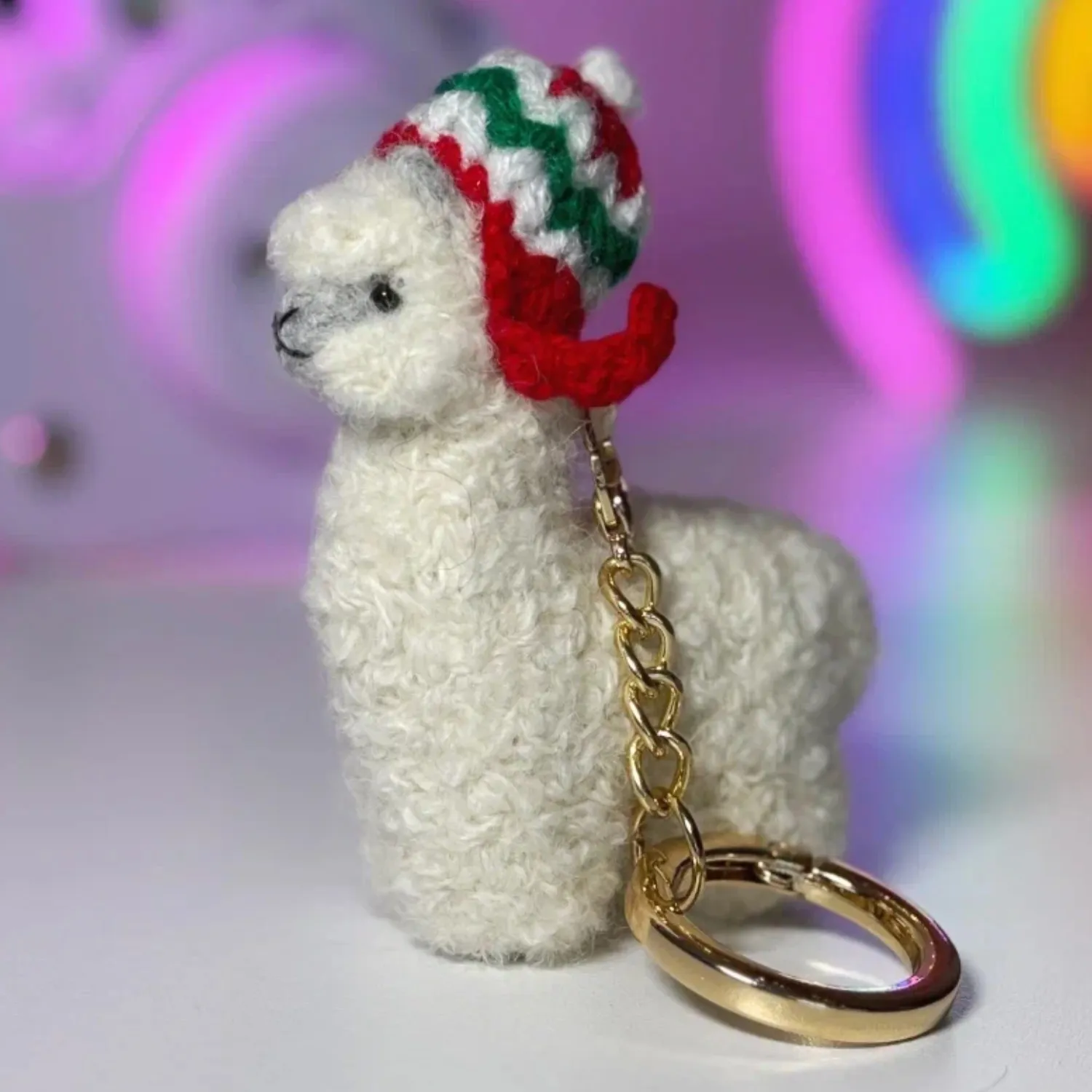 Брелок вязаный ЛеРаРу альпачонок Кууски в праздничной шапочке - ваш талисман, который привлекает приятные знакомства, романтику и моменты радости
