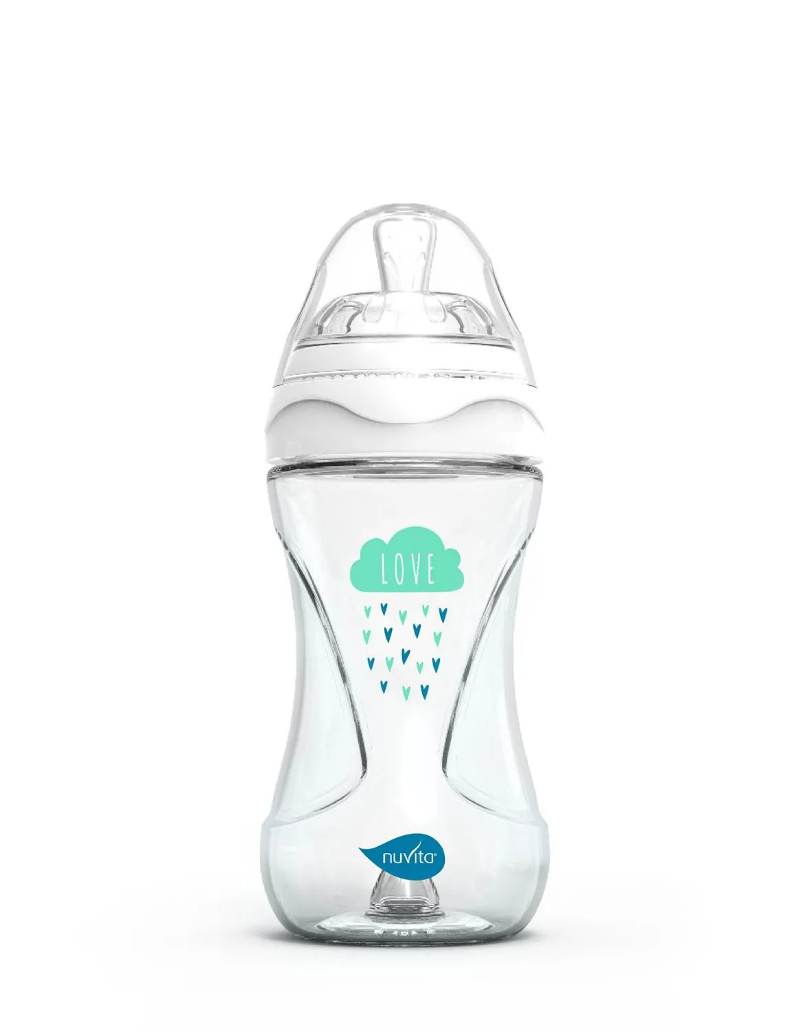 Инновационная антиколиковая стеклянная бутылочка, которая облегчает чередование кормления грудью и из бутылочки, не нарушая привычку ребенка к естественному кормлению. Оснащена уникальной антиколиковой системой, встроенной в дно бутылочки: воздух, поступающий из нижней части бутылочки, никогда не смешивается с молоком и не попадает к малышу. Предотвращает колики и ушные инфекции. Единственная бутылочка, одобренная Итальянской ассоциацией стоматологов (AIO), не препятствует естественному развитию зубов и неба. Эргономичный дизайн обеспечивает легкое открывание крышки бутылочки всего одним пальцем. Соска имитирует форму, эластичность и движение материнского соска. Широкое основание соски дает ощущение соприкосновения с материнской грудью.