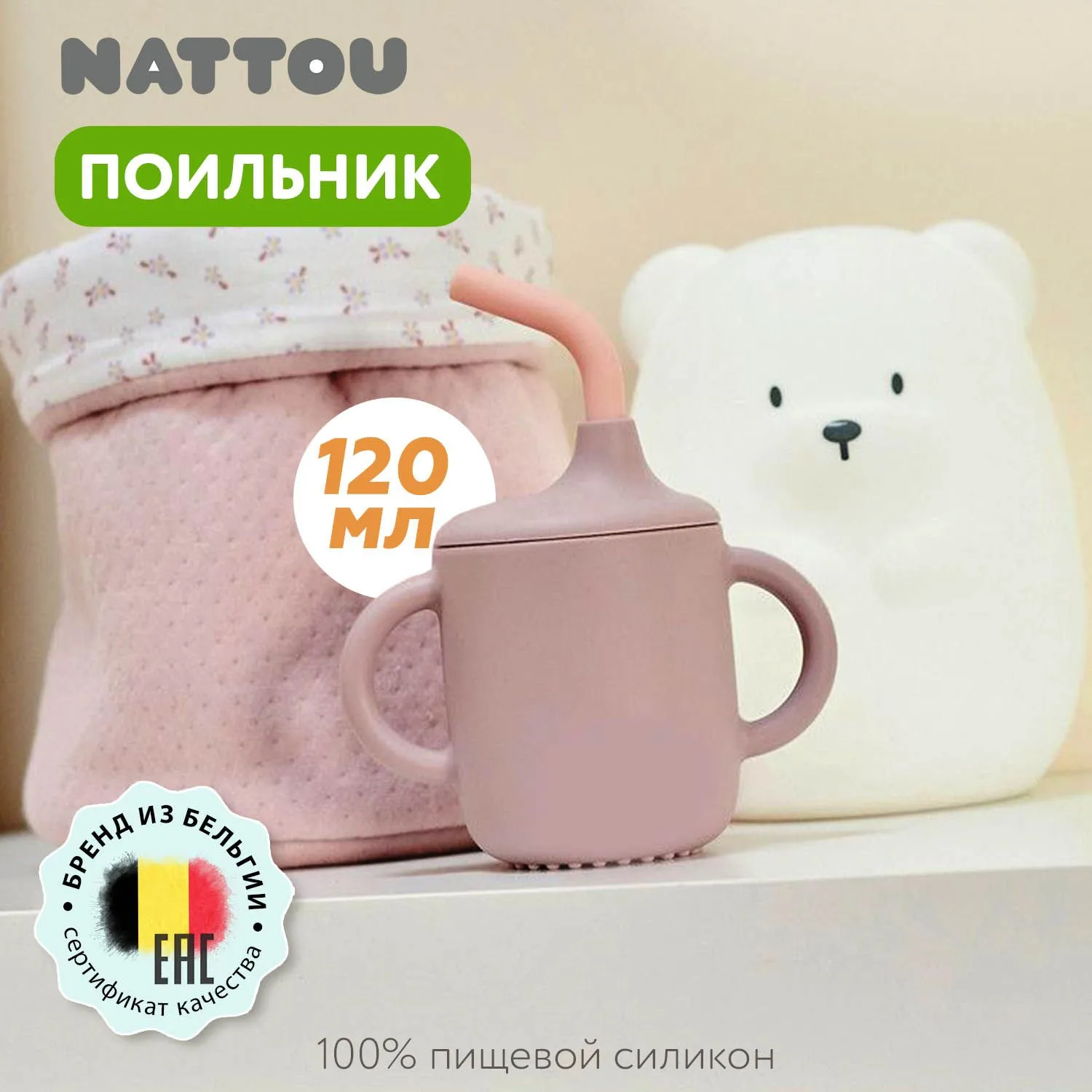 Чашка-поильник с трубочкой Nattou
