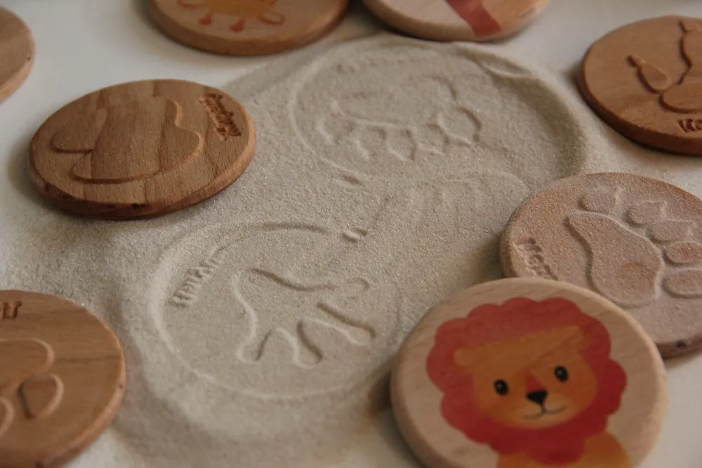 Следы на эко-фишках — объемные. Можно отпечатывать их на песке или пластилине, как будто здесь недавно пробежало настоящее животное! Вы увидите в какой неописуемый восторг придет ваш малыш, увидев след оленя, льва или даже настоящего медведя!