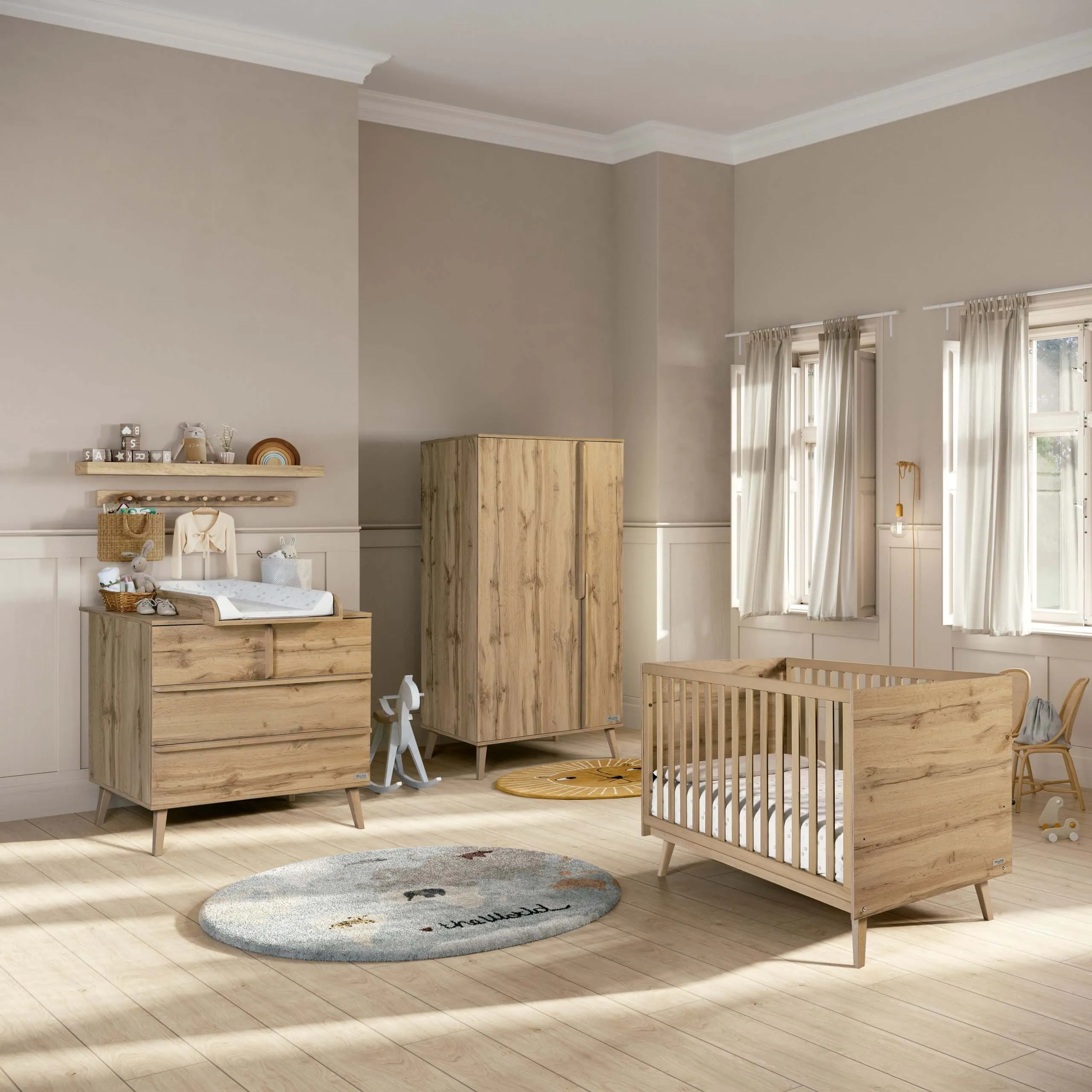Вдохновленная природным стилем и изготовленная из древесины экологически устойчивых лесов, коллекция Martha, состоящая из кроватки, шкафа, ванны и комода, к которым можно добавить пеленальный столик, станет центром внимания в любой комнате. Кроватка 140x70, которая превращается в небольшую кровать, будет сопровождать вашего ребенка по мере его взросления.