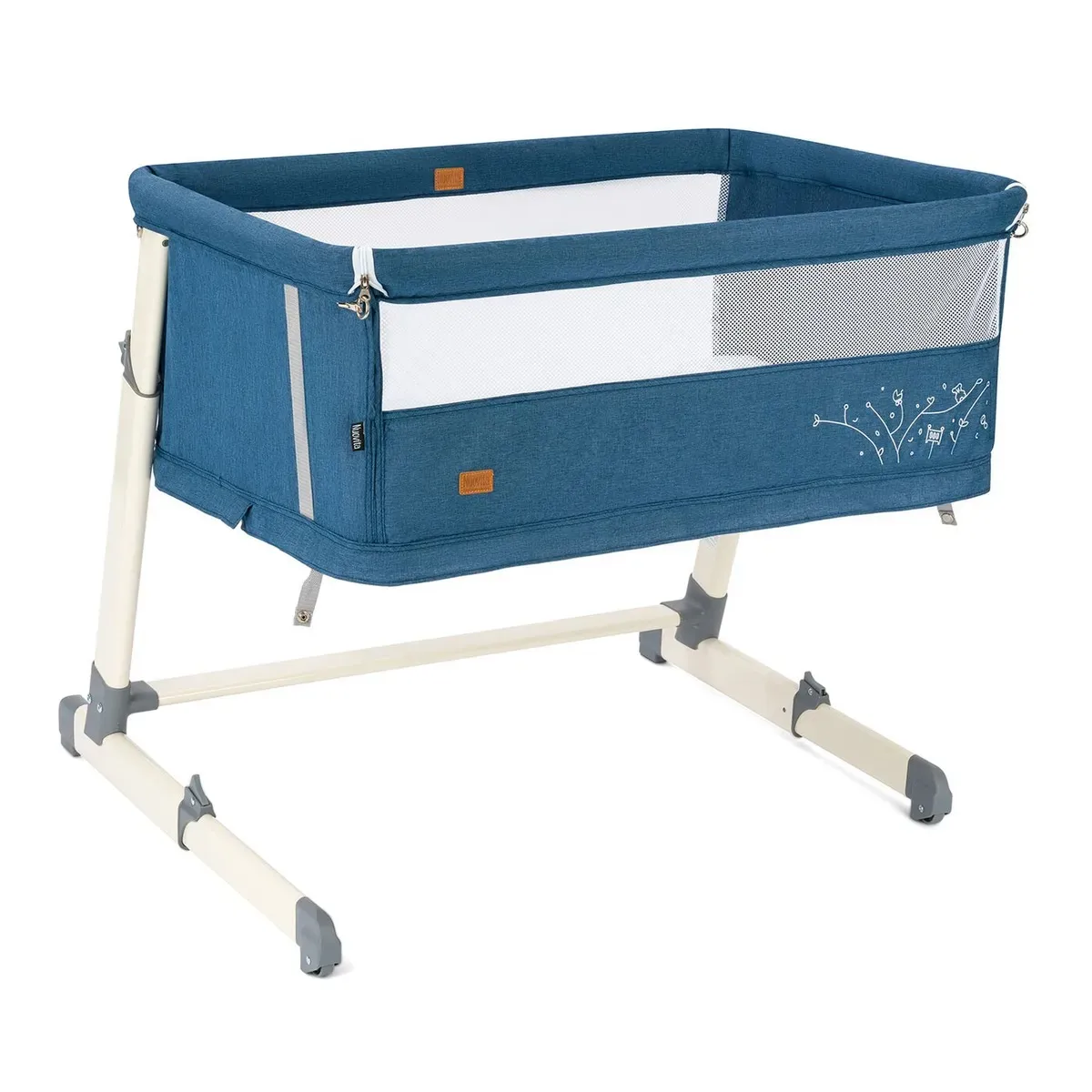 Люлька имеет откидной бортик, фиксируемый на молнии, благодаря чему изделие удобно использовать в качестве приставной кровати. Достаточно отстегнуть бортик и закрепить при помощи ремней детскую кроватку к каркасу родительской постели, соблюдая одинаковую высоту, и конструкция готова для совместного сна мамы и малыша.