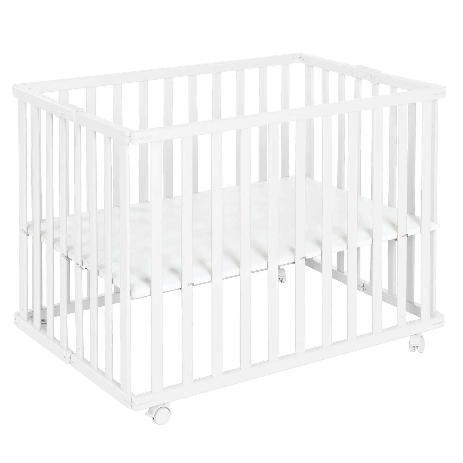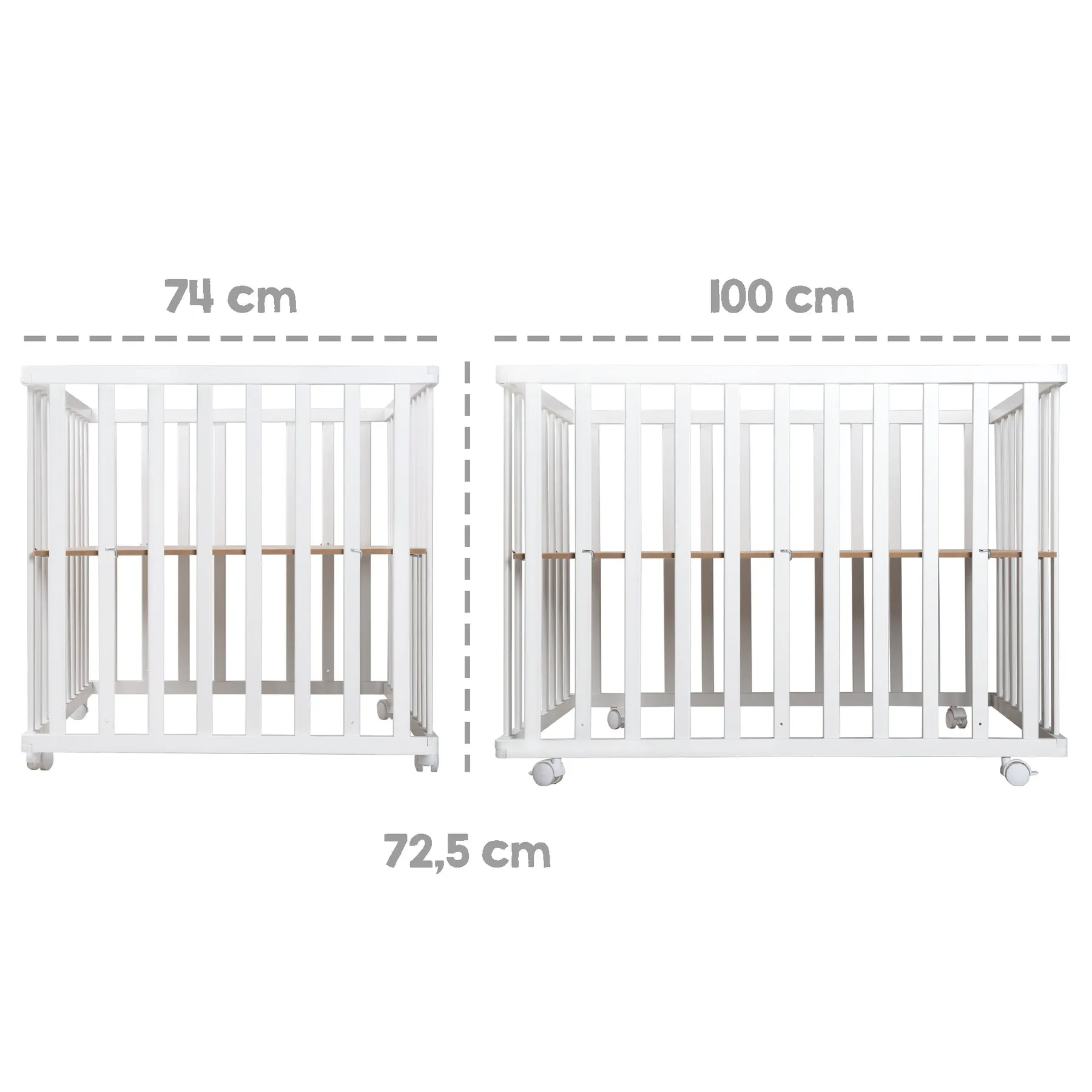 Компактный деревянный манеж размером 74х100 см станет идеальным решением для мобильных родителей. Благодаря складной конструкции экономит пространство, подходит для поездок на дачу или в гости. Универсальный серый цвет манежа и европейский лаконичный дизайн позволят поставить его в комнату с любым интерьером. Манеж имеет 2 уровня высоты дня удобства родителей и безопасности малыша. Колесики с тормозным механизмом обеспечивают устойчивость и мобильность манежа.