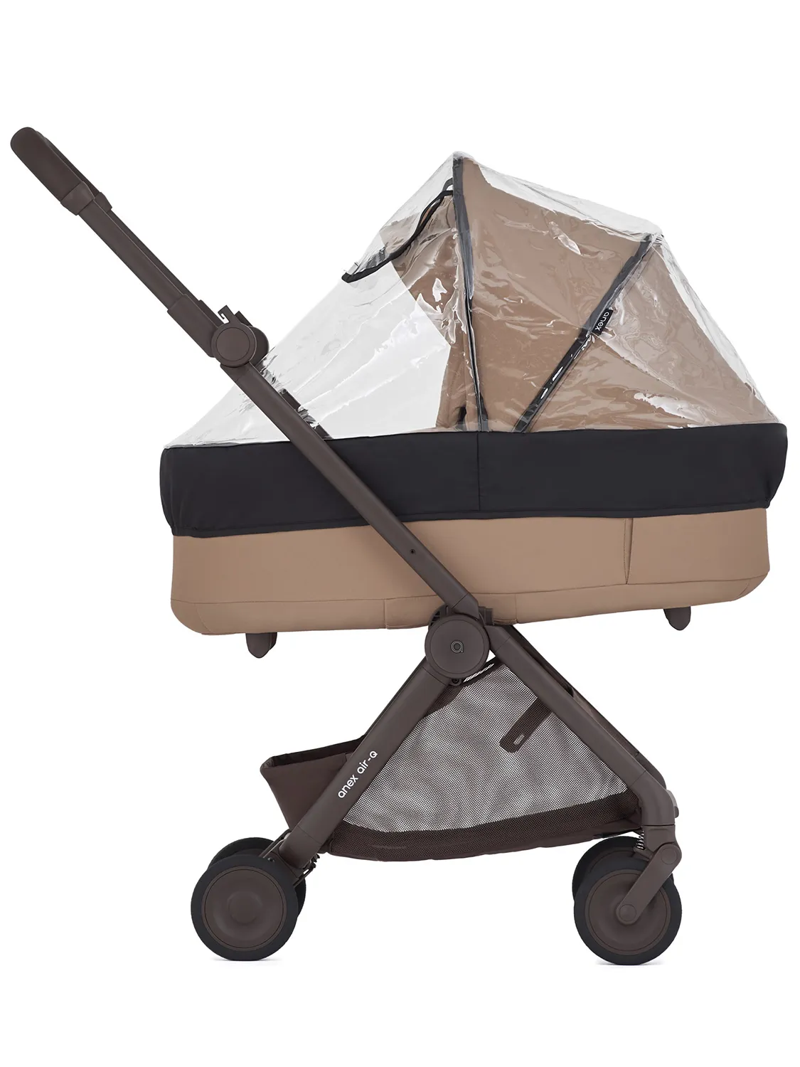 Этот легкий прозрачный дождевик идеально подходит для люльки Anex Air-Q, плотно облегая её по форме, не мешая обзору и не создавая эффекта «парника».