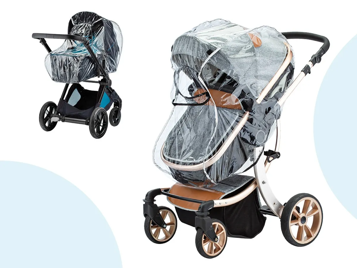 Дождевик — это специальный чехол, который надевается на коляску. Ему не страшны сильный ливень и снегопад. Дождевик полностью прозрачен, поэтому малыш может наблюдать за происходящим на улице, а мама видеть, что делает малыш.