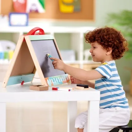 • Позвольте внутреннему художнику вашего малыша исследовать различные среды. В этом детском мольберте есть и черная, и белая доска. Идеально подходит для развития творческих способностей, воображения и самовыражения ребенка.