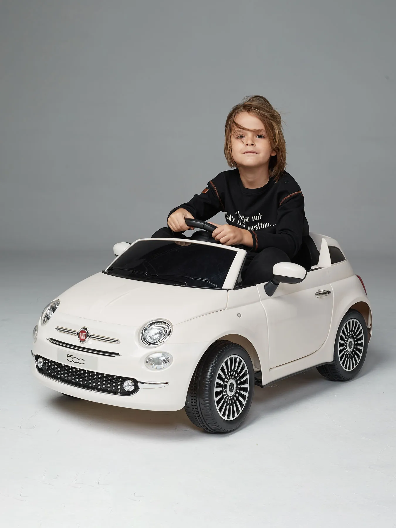 Большой и яркий электромобиль почти как настоящий, только лучше. При нажатии на кнопку включения раздается рев мотора и загорается подсветка салона, панель управления и задние габаритные огни. Внутри — кнопка включения и выключения передних фар. Аудиосистема с дисплеем позволяет выбрать один из нескольких режимов воспроизведения, а также оснащена USB-разъемом — можно слушать свою музыку.