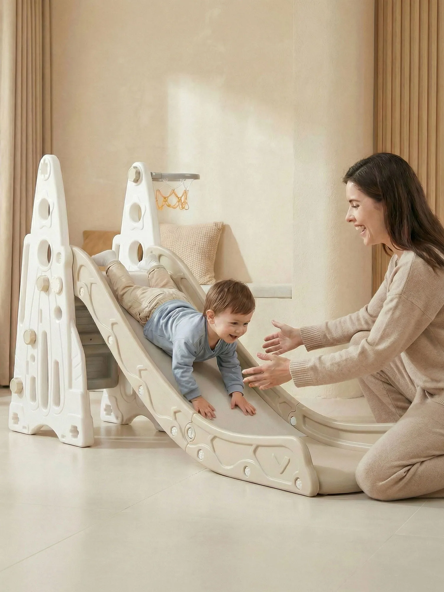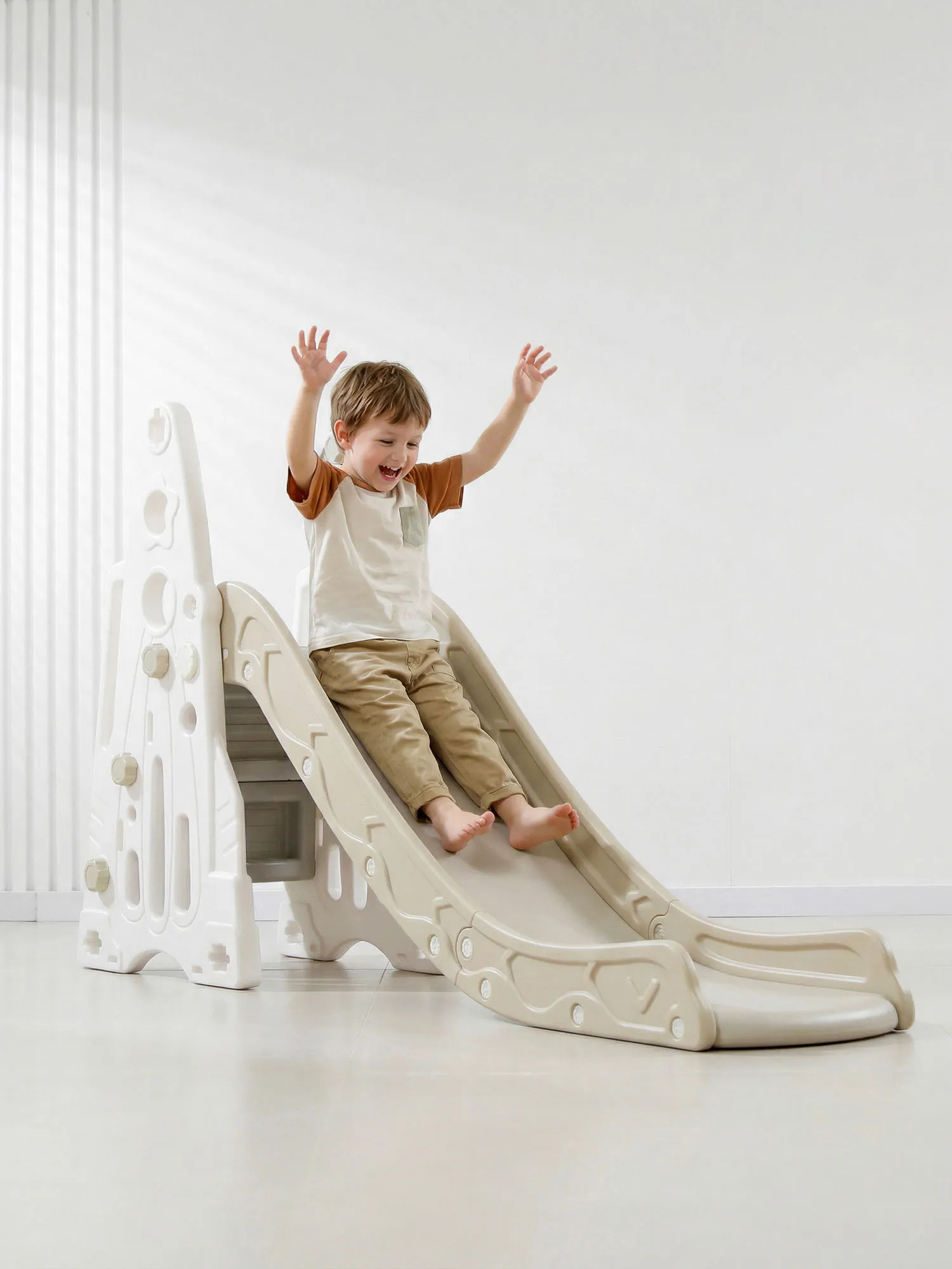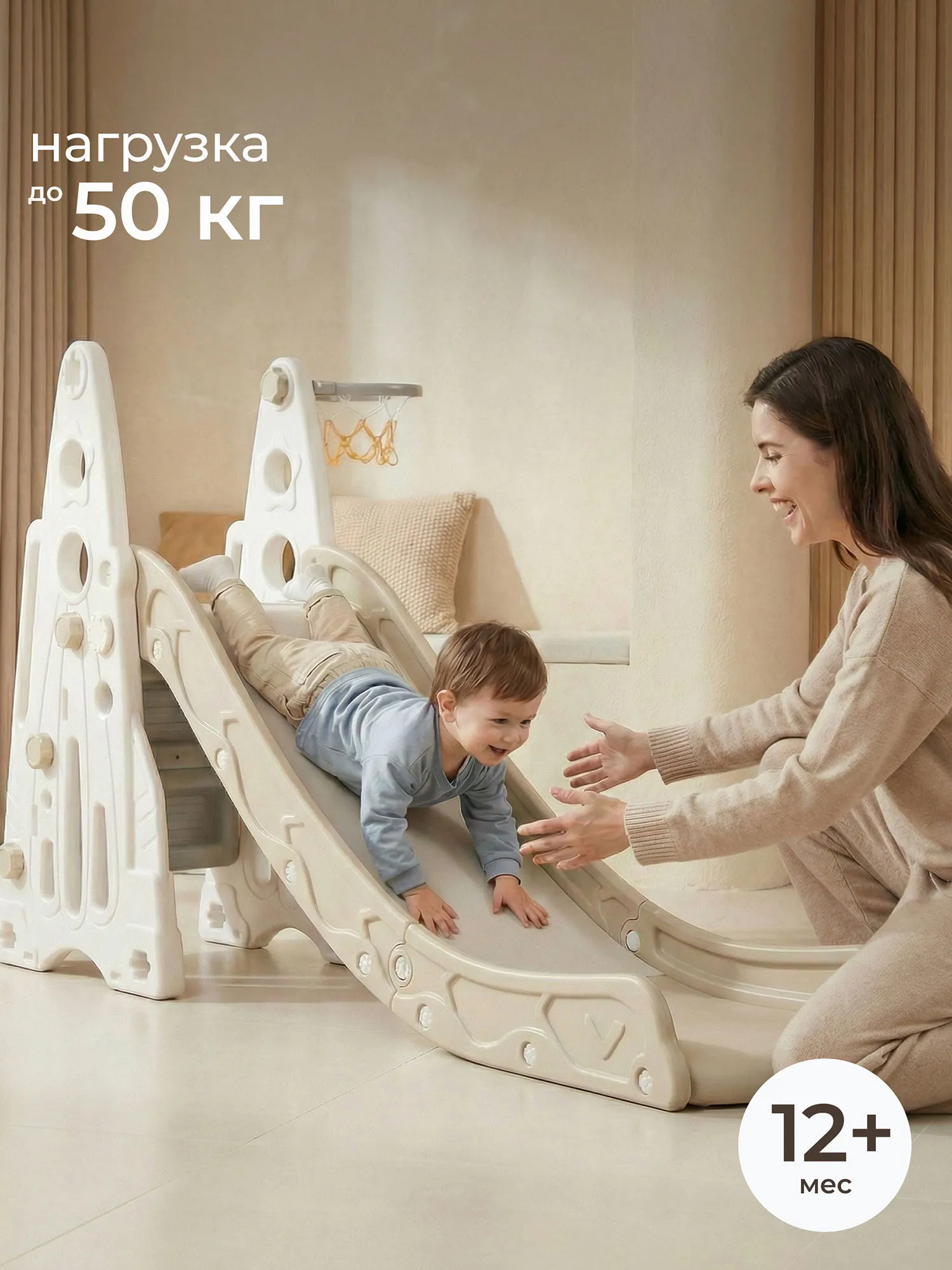 - Высотой всего лишь 145 см, домашняя горка прекрасно вписывается даже в небольшие пространства