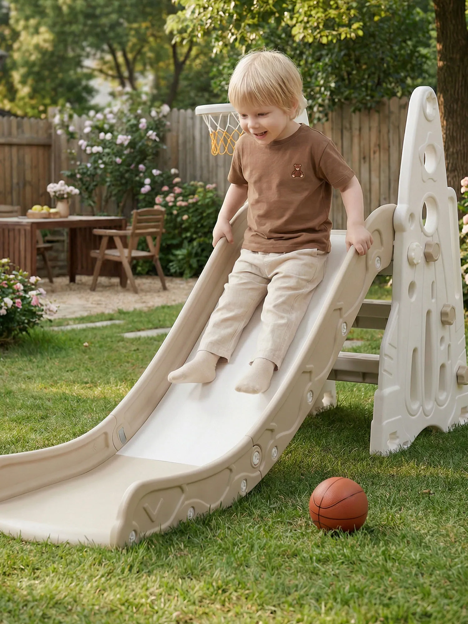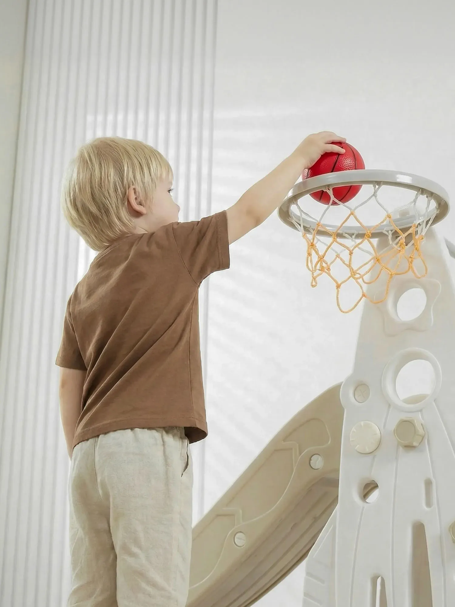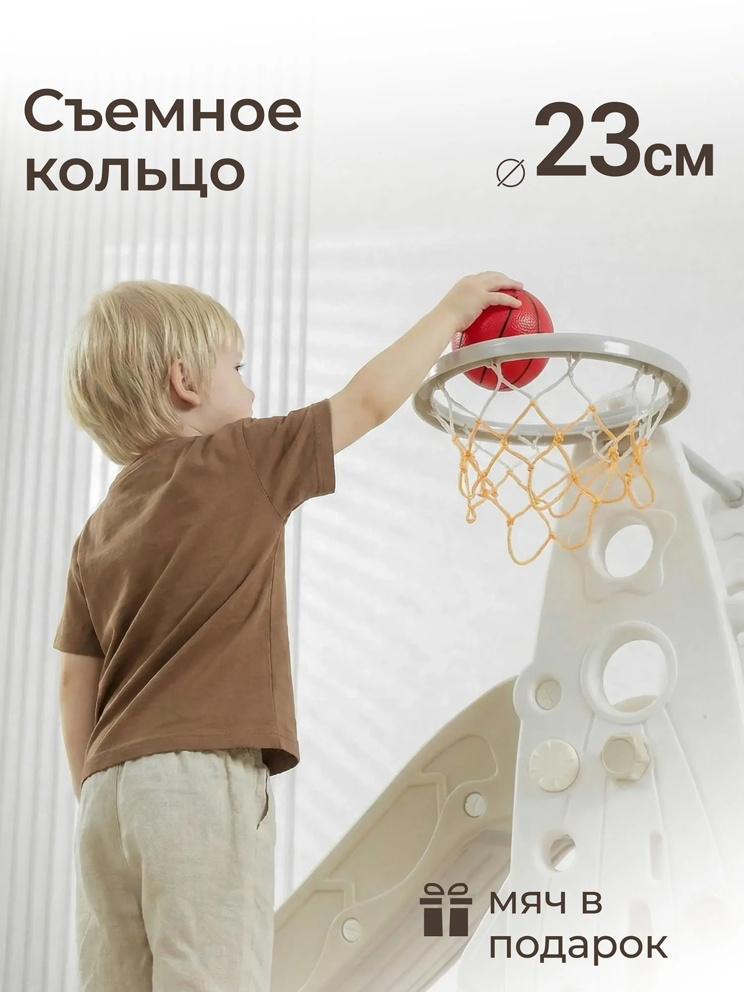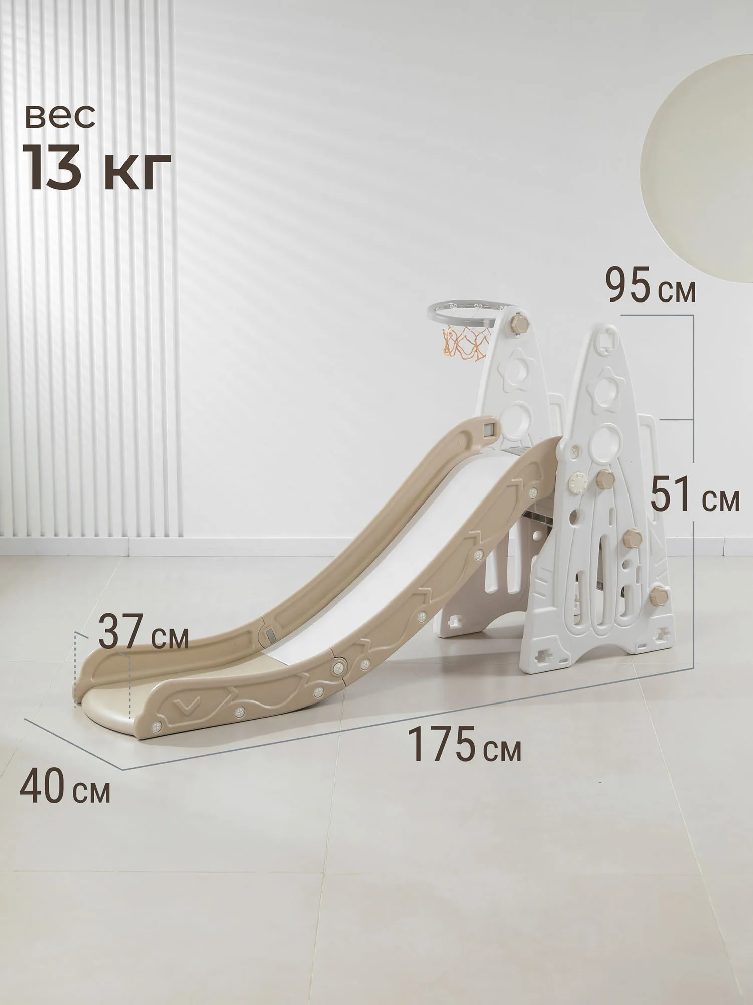 - Детская горка для дома и улицы с баскетбольным кольцом
