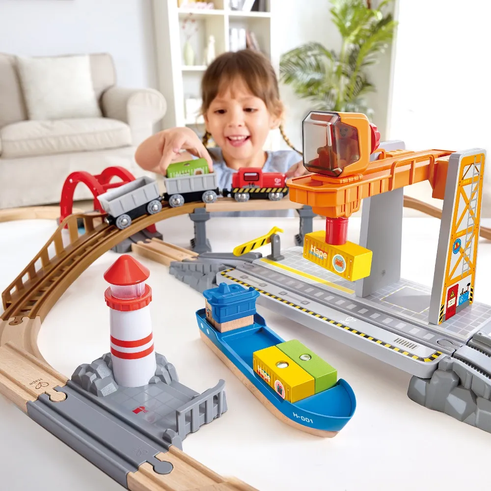 Деревянная железная дорога Hape «Подъемно-погрузочная гавань» 26 элементов