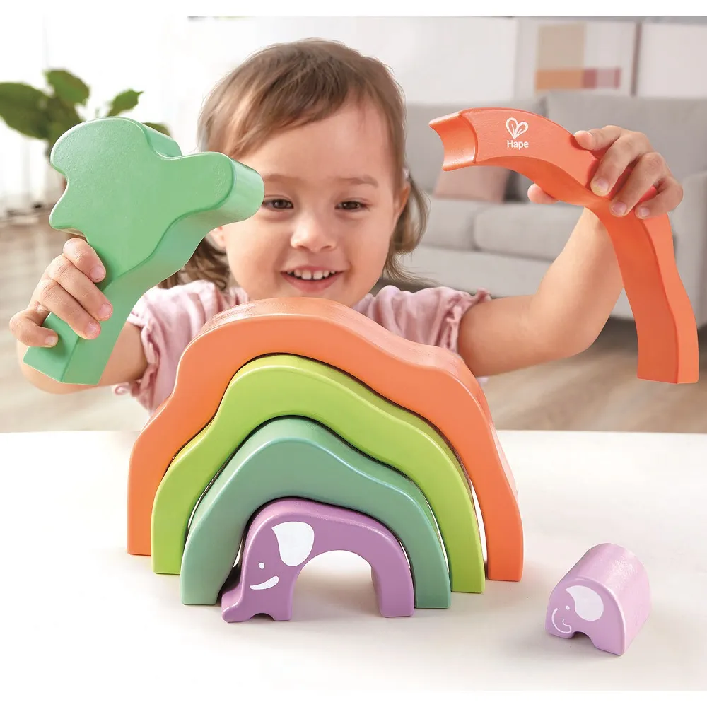 Игрушка 3 в 1 Hape «На сафари со слонами» пирамидка, пазл, игра-балансир