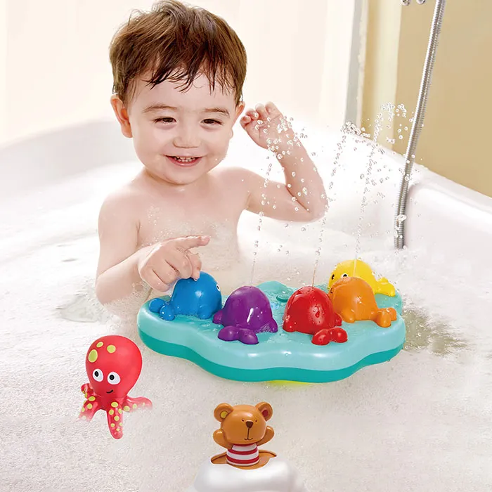 Игрушка для купания «Весёлая компания» — включает музыкальный фонтан с китами, осьминога, мишку в облаке и удобное ведерко.
