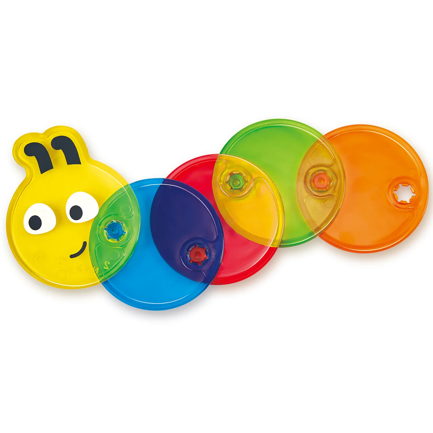 - Игрушка-гусеница сделана из прозрачных сегментов разного цвета