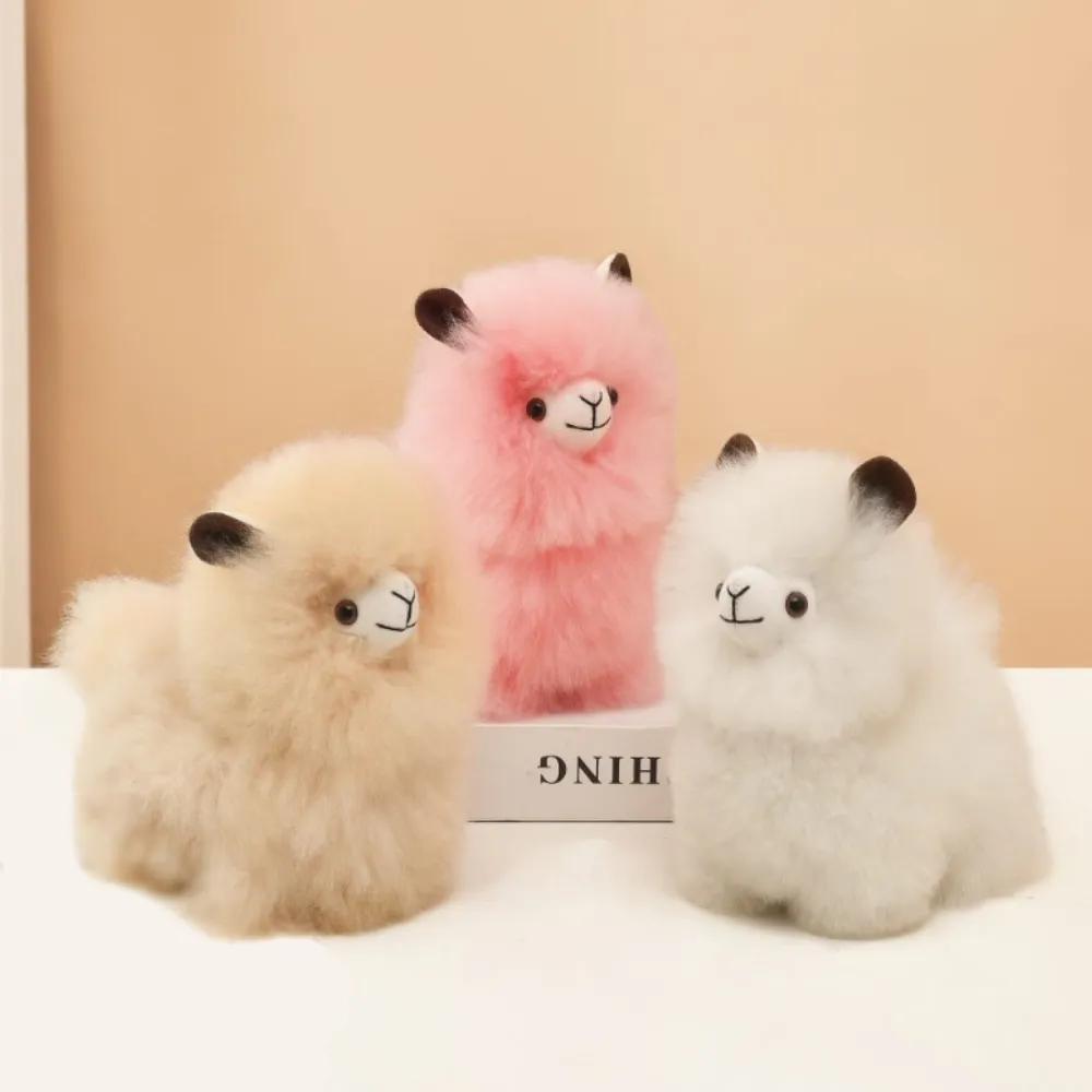 Игрушка мягкая ЛеРаРу Маленькая большеголовая альпака Ванильное облачко ручной работы из 100% меха альпаки